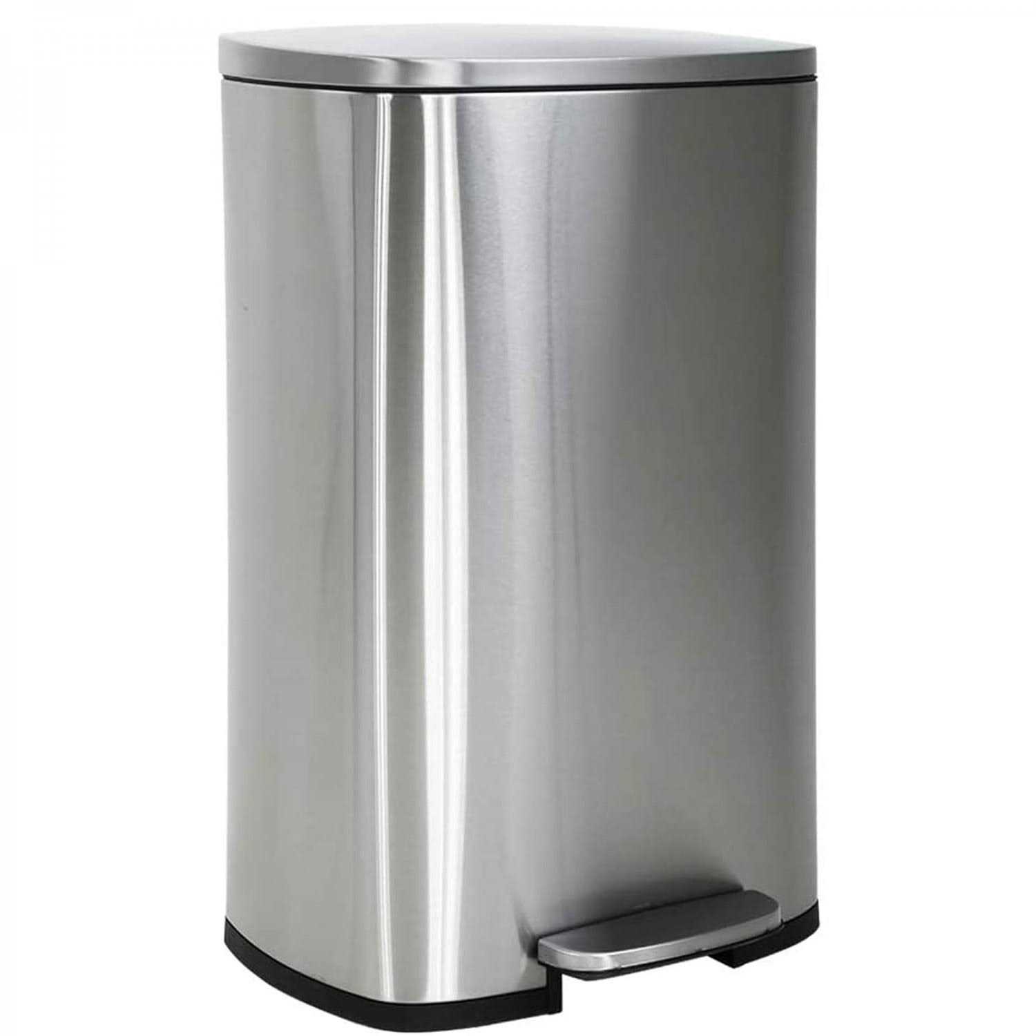 FDW Kitchen Trash Can with Lid for Office Bedroom Bathroom Step Trash Bin Fingerprint-Proof Garbage Bin Brushed Stainless Steel 13 Gallon / 50 Liter