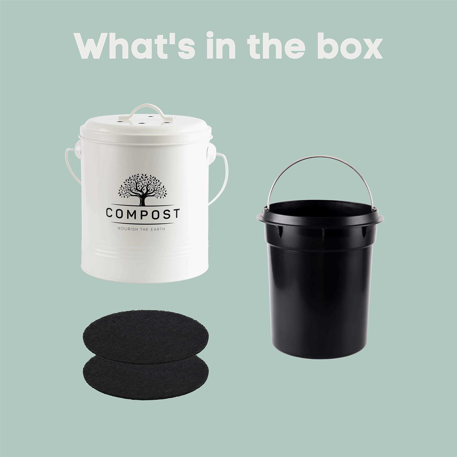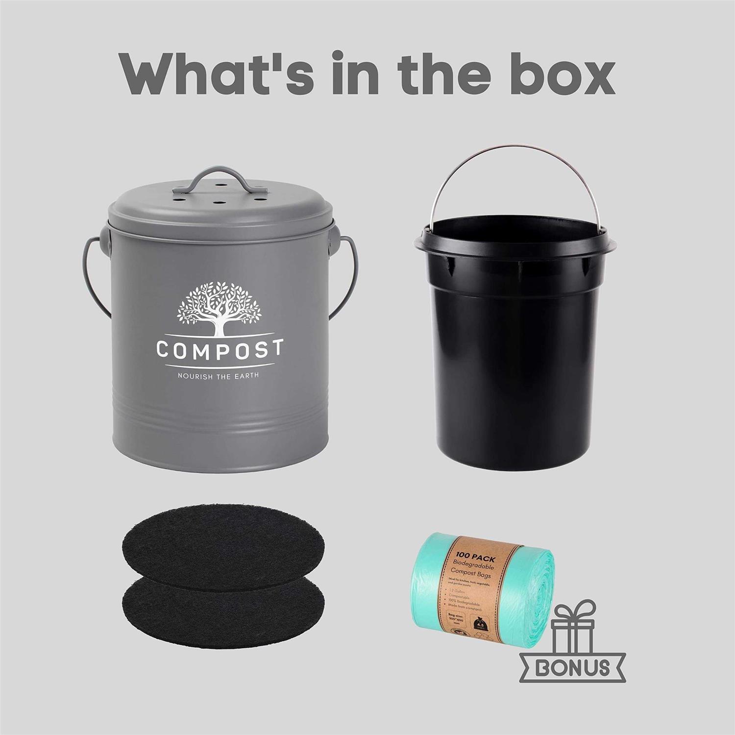 PERFNIQUE Kitchen Compost Bin, 1.3 Gallon Countertop Compost Bin with Lid, Indoor Compost Bucket includes Inner Bucket Liner and Carbon Filter