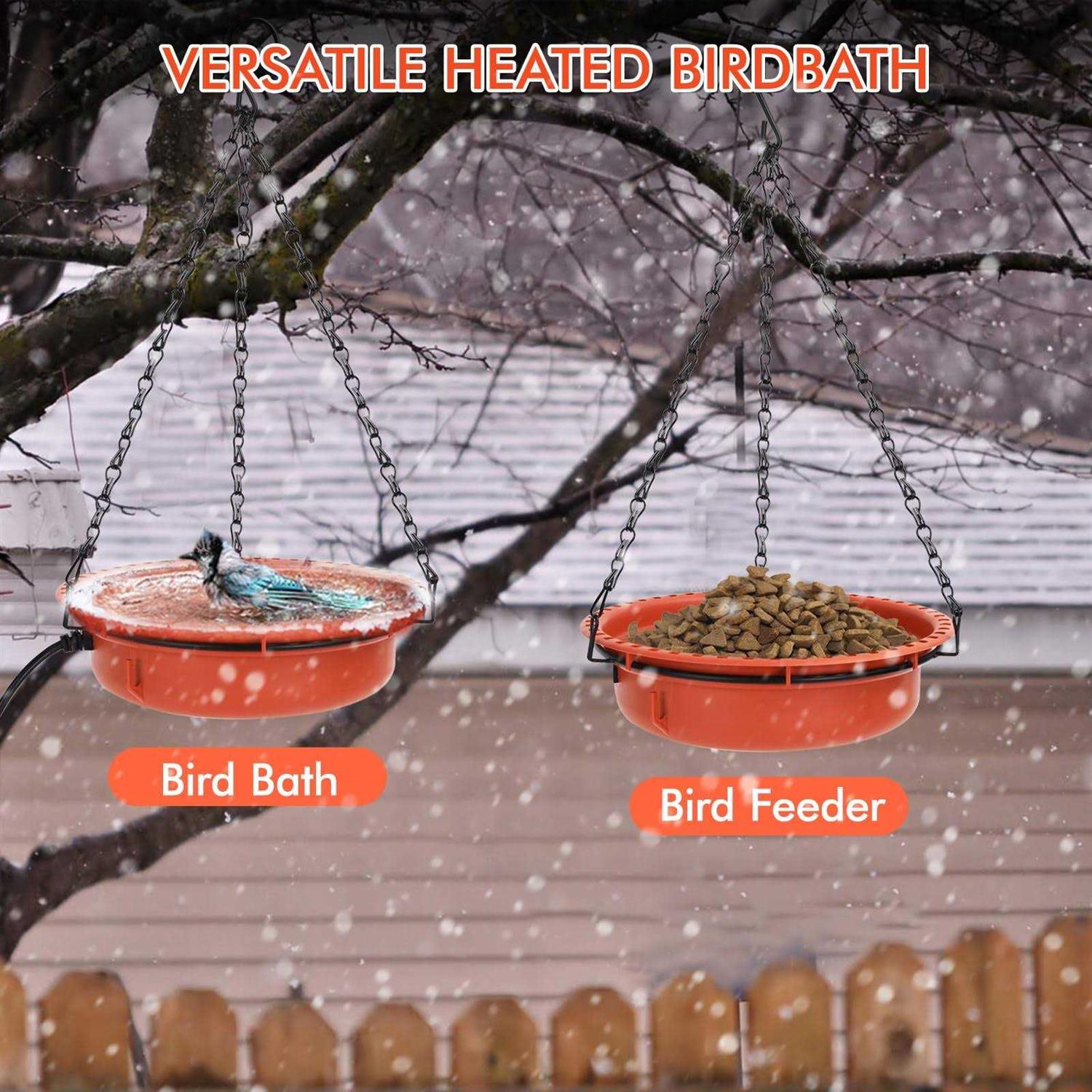 Perfin 75W Hanging Heated Bird Baths for Outdoors for Winter Thermostatically Controlled Heated Bird Bath Deicer Bowl Tray for Garden Backyard Decor