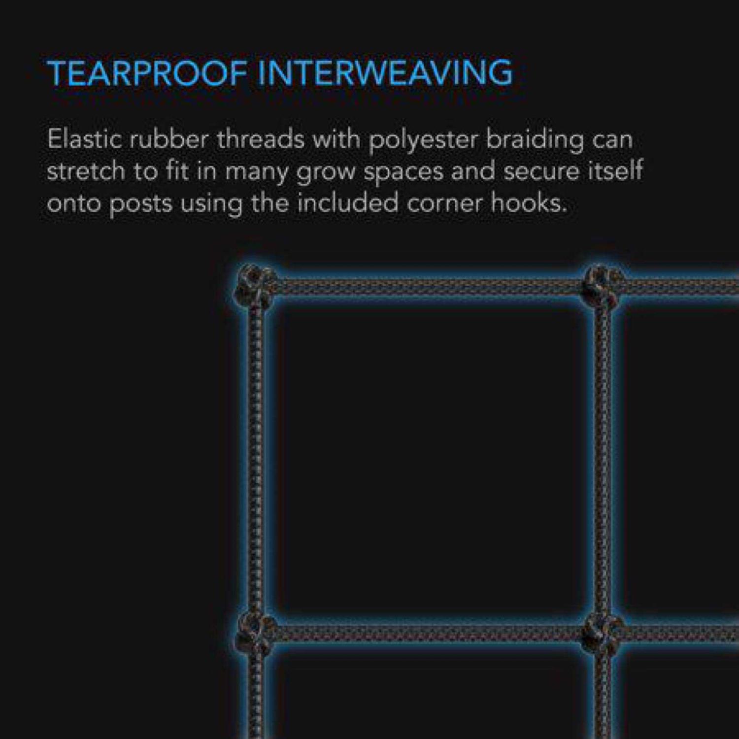 • The steel hooks easily attach the height-adjustable trellis net to your grow tent’s frame.