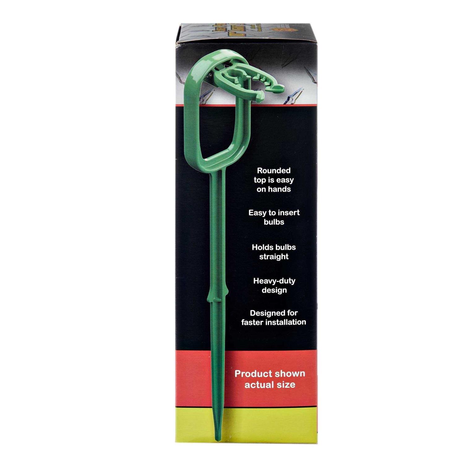 Enhance visibility or create a beautiful holiday display with these Adams Manufacturing Light Stakes. They are made of durable 100% Polypropylene to withstand the elements and feature a rounded top for easier handling. The landscape supply stakes provide fast and easy installation of lights. They have a patent-pending bulb gripper designed specifically to grasp onto the neck of a light and keep it secure. The Adams Manufacturing Light Stakes accommodate all sizes of bulbs, including mini, C5, C7, C9, C12 and G-size. They are suitable for lighting up driveways, sidewalks and landscaping and holiday displays.
