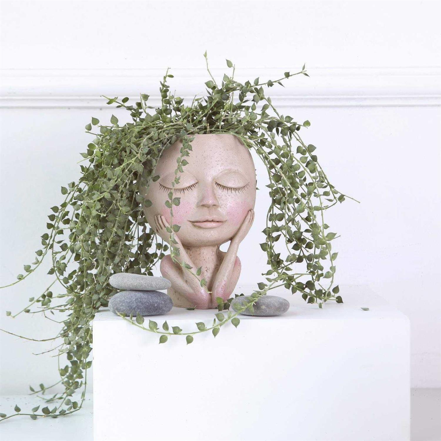 • AIMEBBY Face Flower Pot Head Planter Pot Succulent Planter Cute Resin Cactus Planter with Drainage Hole Closed Eyes,Light.