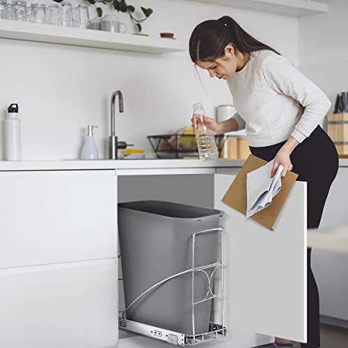 Aismio Pull Out Trash Can Under Cabinet, Kitchen Adjustable Sliding Waste Bin Frame, Cabinet Garbage Can Pull Out for Kitchen Under Counter, Trash