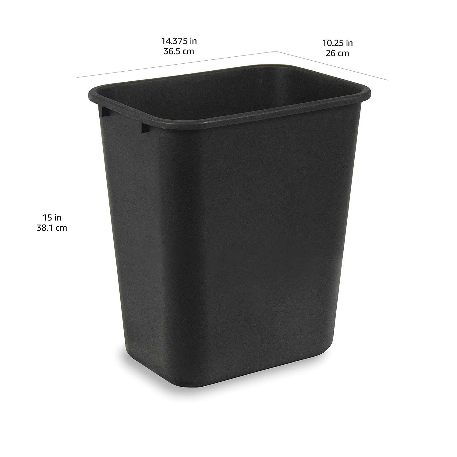 Brand: AmazonCommercialColor: BLACKFeatures: 7 gallon wastebasket for use in commercial environments – Appropriate for offices, public spaces, restaurants, schools, hospitals, and other high-traffic areas – Durably made with linear low density polyethylene plastic that stands up well to everyday use – Smooth finish that can easily be wiped clean with a damp cloth – Lightweight stackable design for easy storage or transport with other matching bins – True color molded plastic doesn’t fade over time – Details: An Amazon Brand – UPC: 840095871235Package Dimensions: 262x487x1352