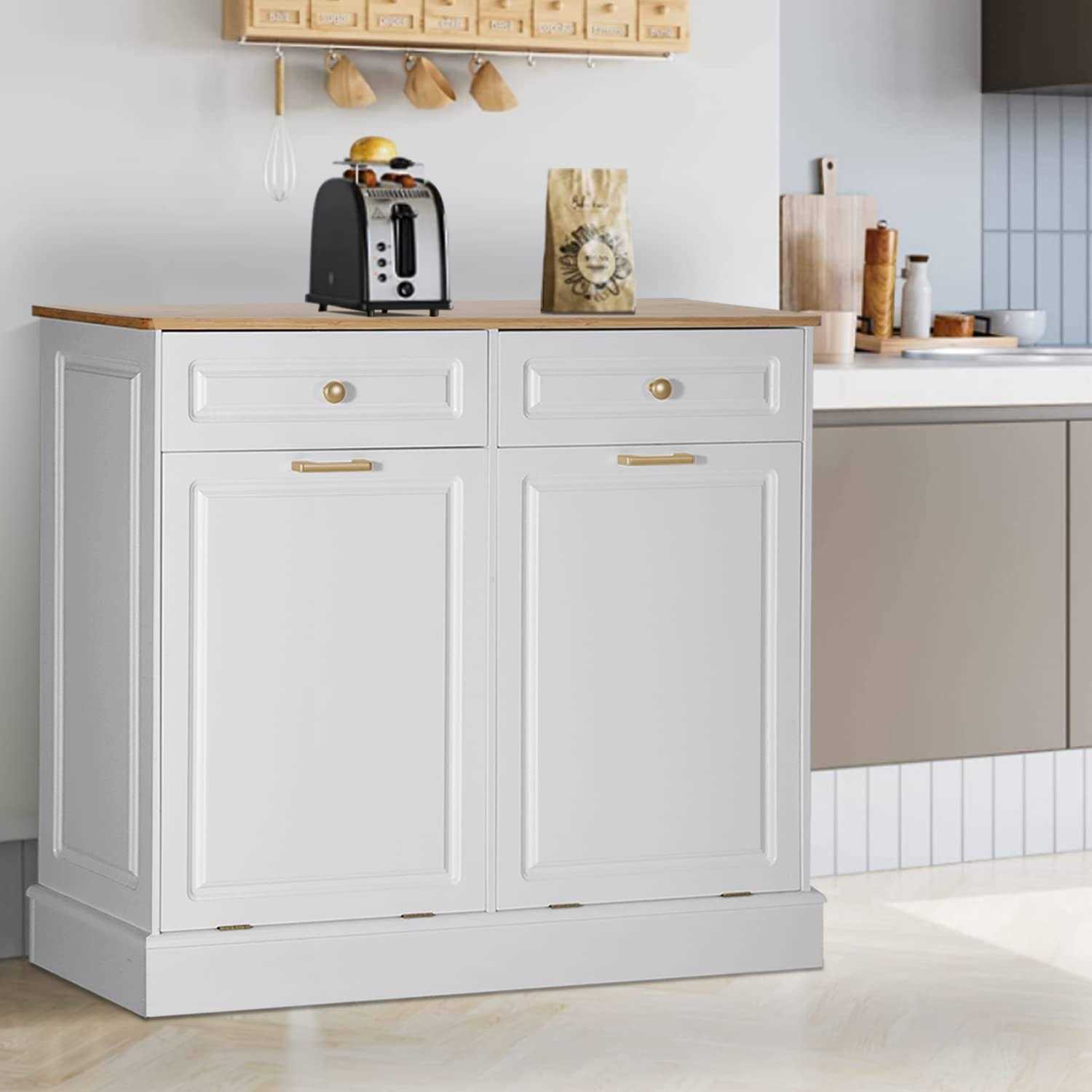 Anbuy Dual Tilt Out Cabinet with Two Wood Hideaway Trash Drawers