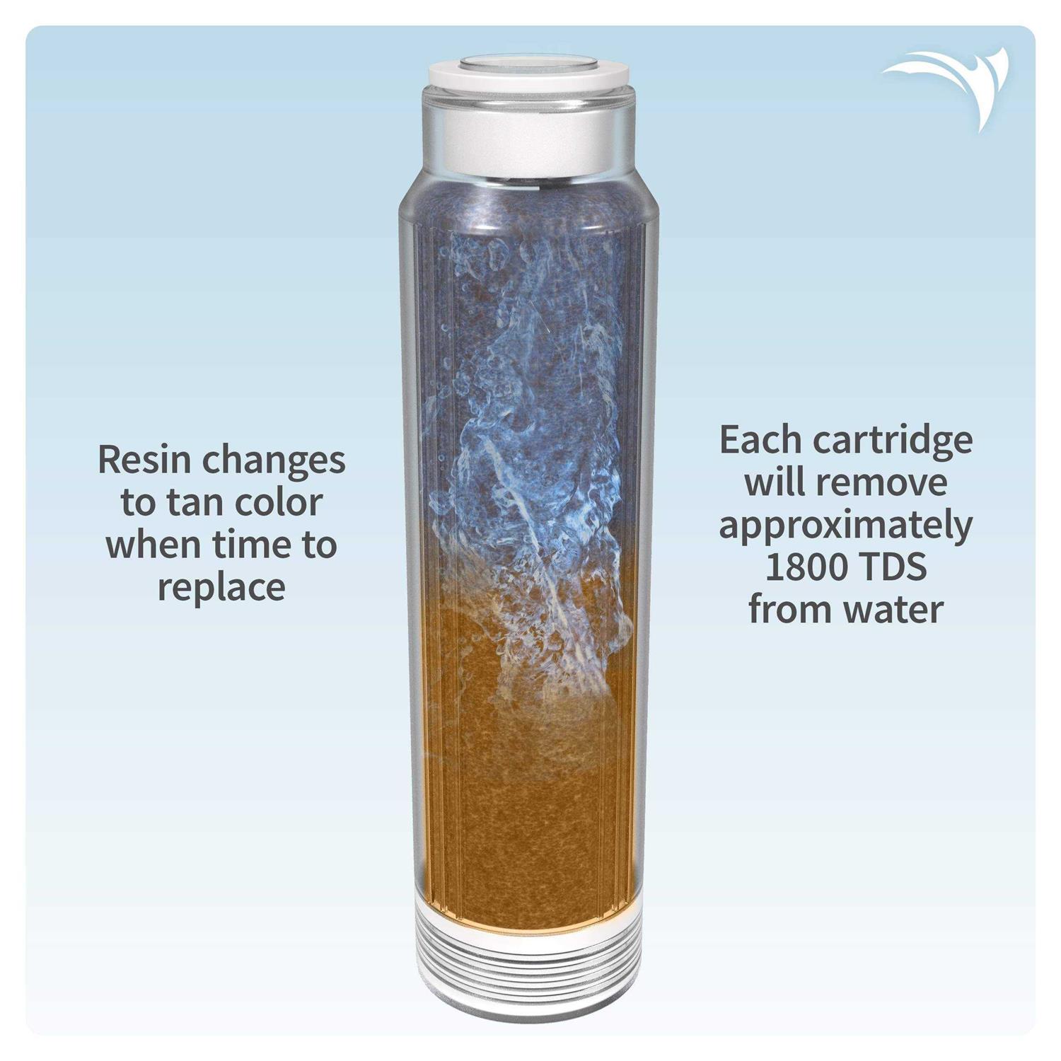 - EFFECTIVELY REMOVES TDS IN WATER When water passes through the resin, TDS (total dissolved solids) are removed. Each cartridge will remove approximat.