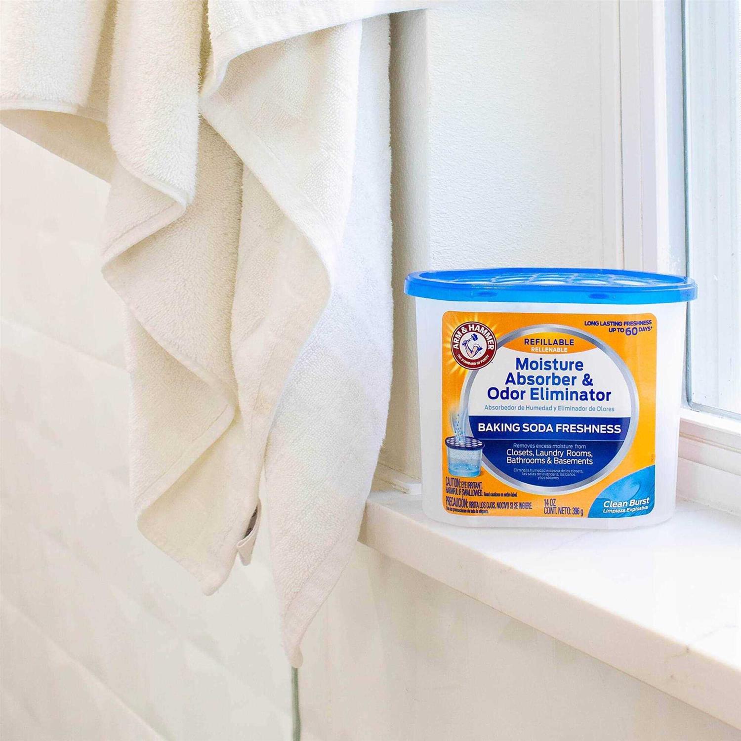 - Use Arm & Hammer Moisture Absorber and Odor Eliminator Refills to attract and trap excess moisture from damp spaces.