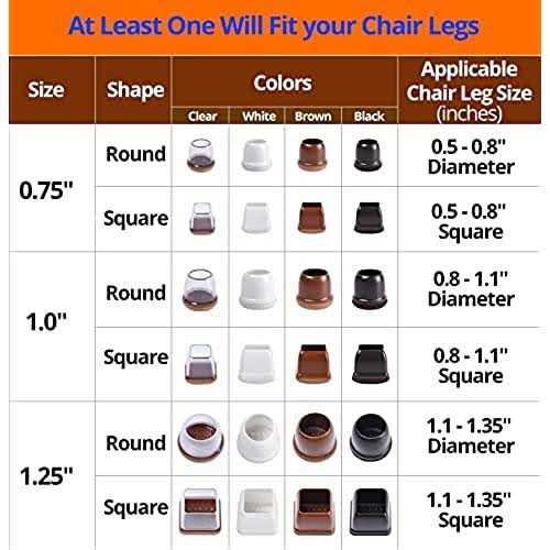Furniture Pads by ARTHURS. The wrapped felt prevent the rubber touching the floor to avoid rolling off – even when seat on the chair. 0.2 inches or 5 mm thickened bottom makes it more durable and prevent metal chair legs punching through. The wrapping style felt also works much better with non-straight angled chair leg than others. There are many sizes, round and square shapes and 4 colors (Clear, White, Brown, and Black/Chocolate) to choose from. So, you can find one to integrate well with the colors of furniture legs and the surroundings. Better color match will make the chair leg floor protector less noticeable. The Chair Leg Cap and Felt are integrated as one body so felt will never detach. Silicone chair leg caps with felt wraps for users sliding a lot, furniture silicon protection cover, protect the floor, reduce noise and still non-slip. Suitable for round and square and other shapes of furniture…