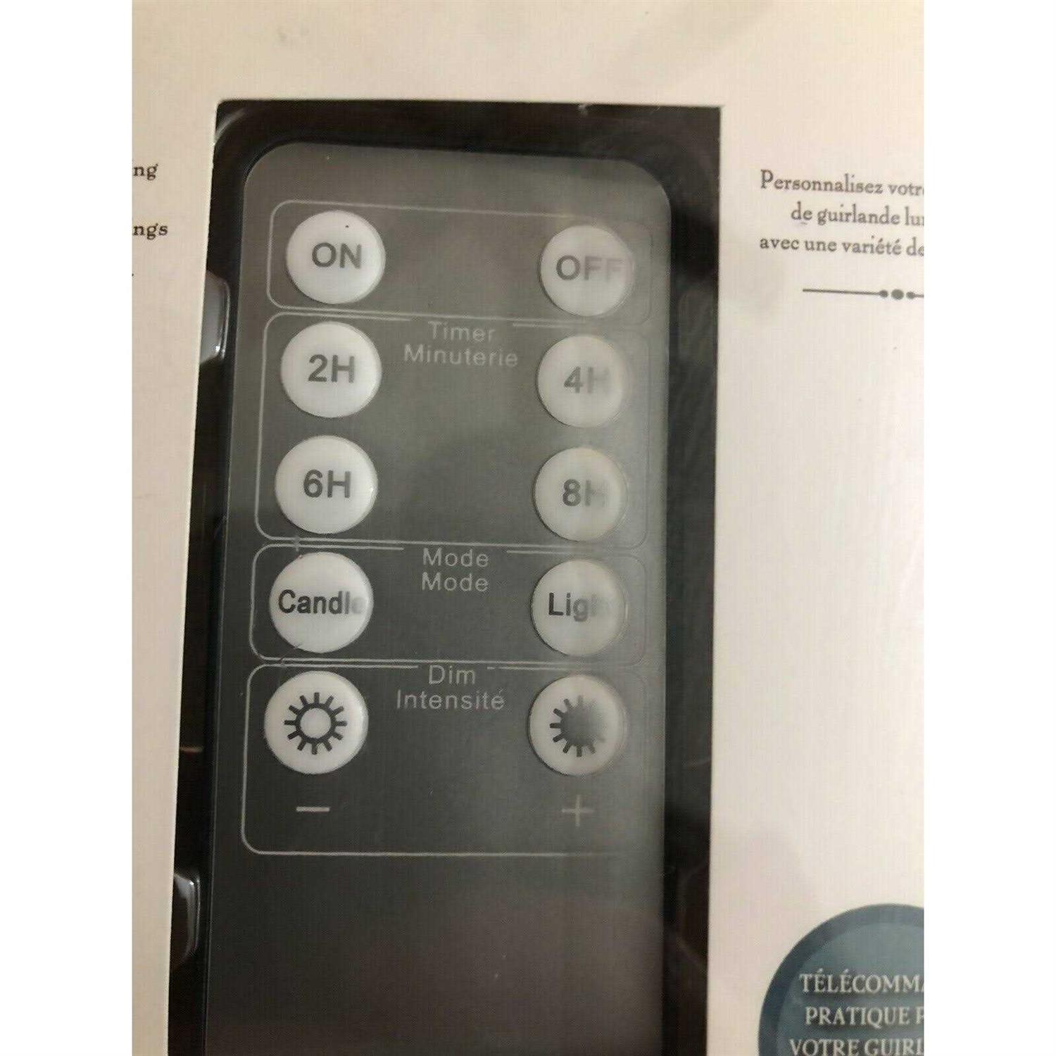 Use this remote to create the right ambience for your decor. Customize your Ashland decorative LED string lights with this remote control. Remote functions include dim, bright and flickering lights as well as 2, 4, 6 and 8 hour timer. Details: 1.58″ x 0.20″ x 3.35″ 1 remote control Uses CR2025 button cell battery (battery included) Plastic and metal Works with Ashland wire lights (not included), please check Ashland wire light packaging to confirm compatibilityCAUTION: Install batteries properly using the polarity guides on the product. Remove batteries when not in use. Dispose of used batteries properly.