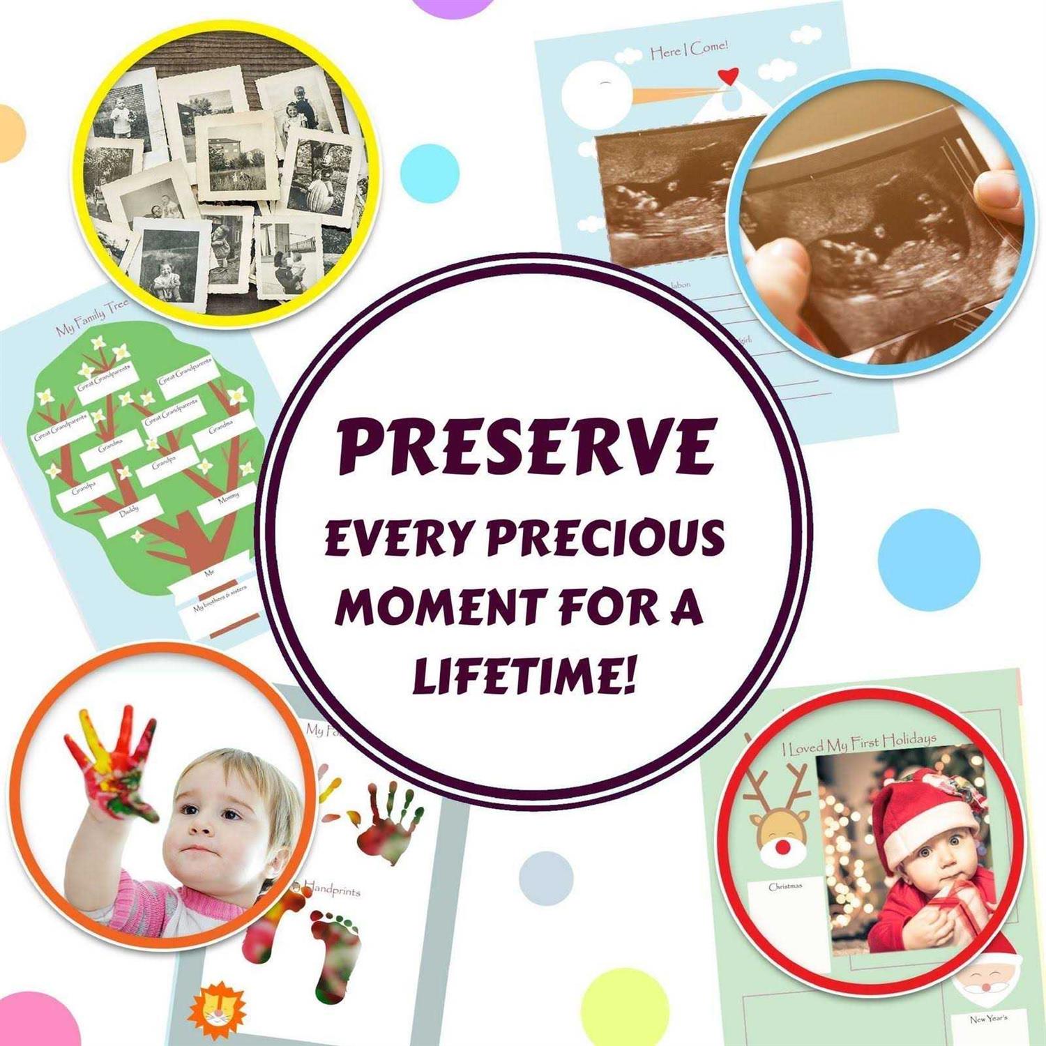 - Capture and preserve every precious moment from when you found out you were expecting all the way up until your baby is 5 years old.