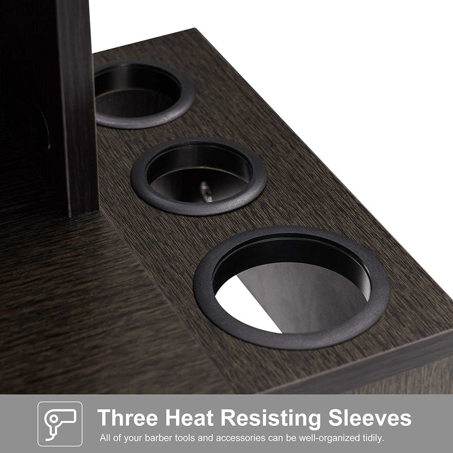 Item Description If you need a barber station which contains cabinet,open storage space and lockable drawer,our latest barber station can meet all your needs.You no longer have to worry about having no room for your hair dryer and curling iron,this barber station provides 3 nylon rings to arrange these hairdressing tool. Ease of installation is also one of our barber stations advantages.