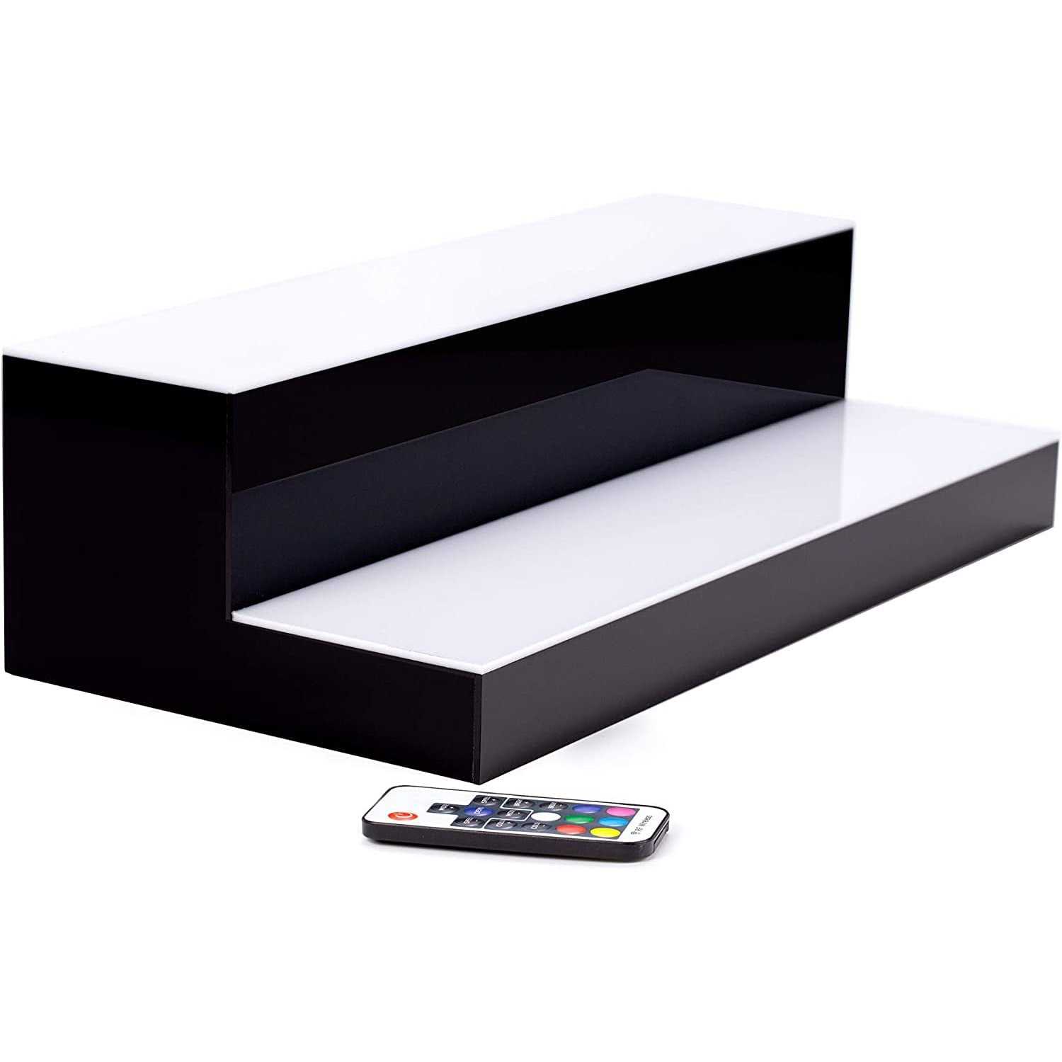 BarSquad LED Lighted Bar Shelf – 16in, 2 Step Illuminated Liquor Bottle Display Shelf with Multicolor Lighting Modes, Wireless Remote