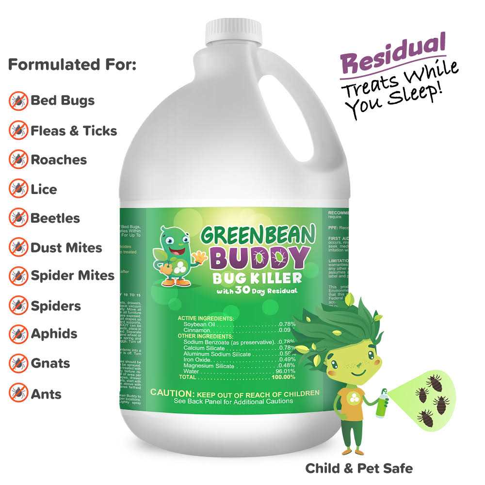 Bed Bug Killer, Lice, Roach, Flea, and Tick Residual Treatment and Preventer, 1 Gallon by Green Bean Buddy