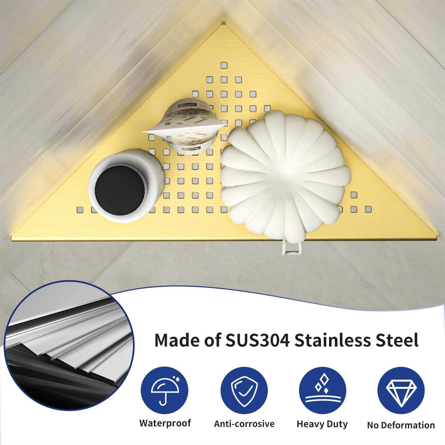 Bernkot Corner Shower Shelf 10″ Brushed Gold 304 Stainless Steel Recessed Corner Shelf Bathroom Shelf Rack for for Tiled Wall, No Drilling