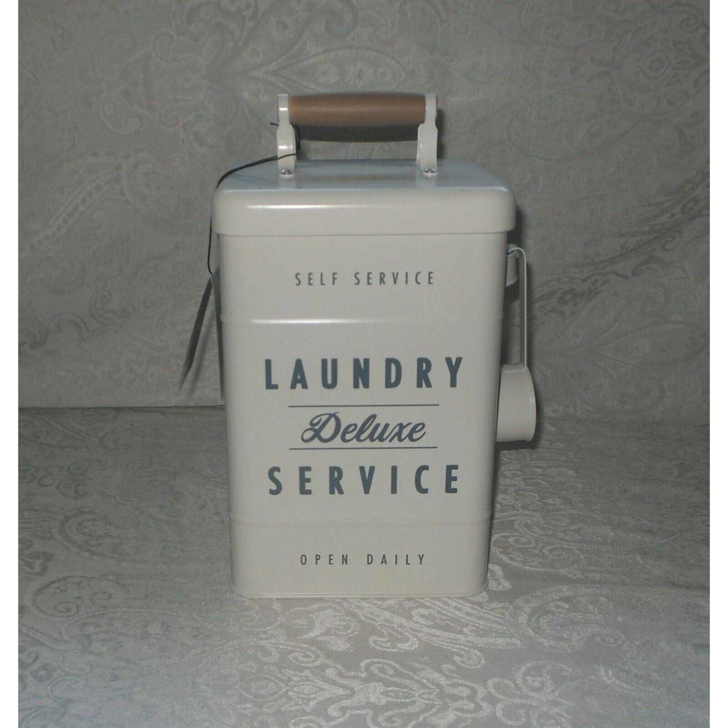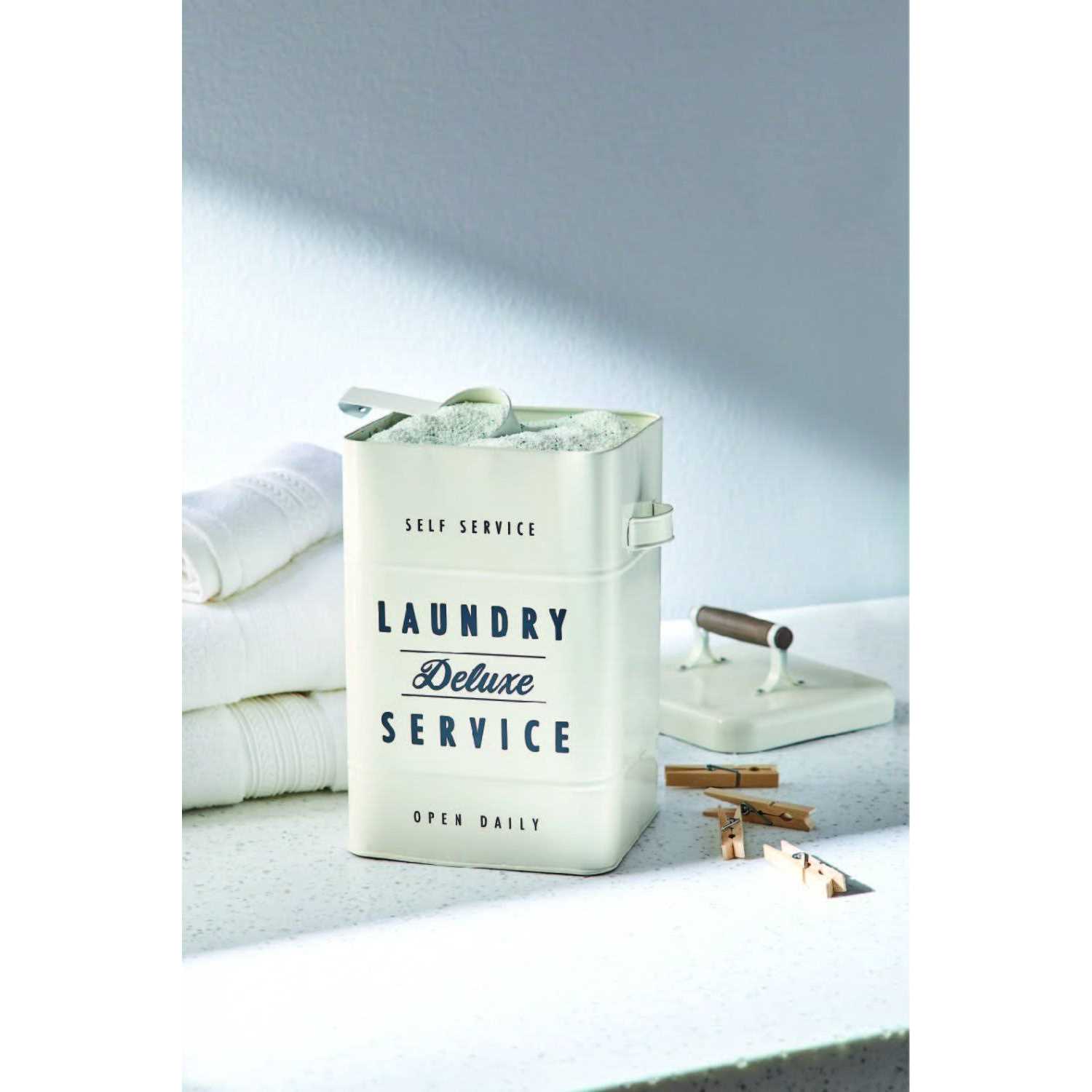 Better Homes & Gardens Laundry Detergent Holder with Scoop Wipe clean with a dry cloth and store in dry place. Holds up to 11 LBS(5 KG) of detergent powder or 100 laundry pods. Better Homes & Gardens Laundry Holder Large with Scoop Keep washing powder or pods secure in this attractive box. The tight steel plate lid will keep your washing powder nice and dry but not airtight. The finish is smooth and glossy and easily wiped down. Made of 100% great quality carbon steel are very durable, you can use it without worry. It comes with an easy open lid and a hanging measuring scoop for your convenience.