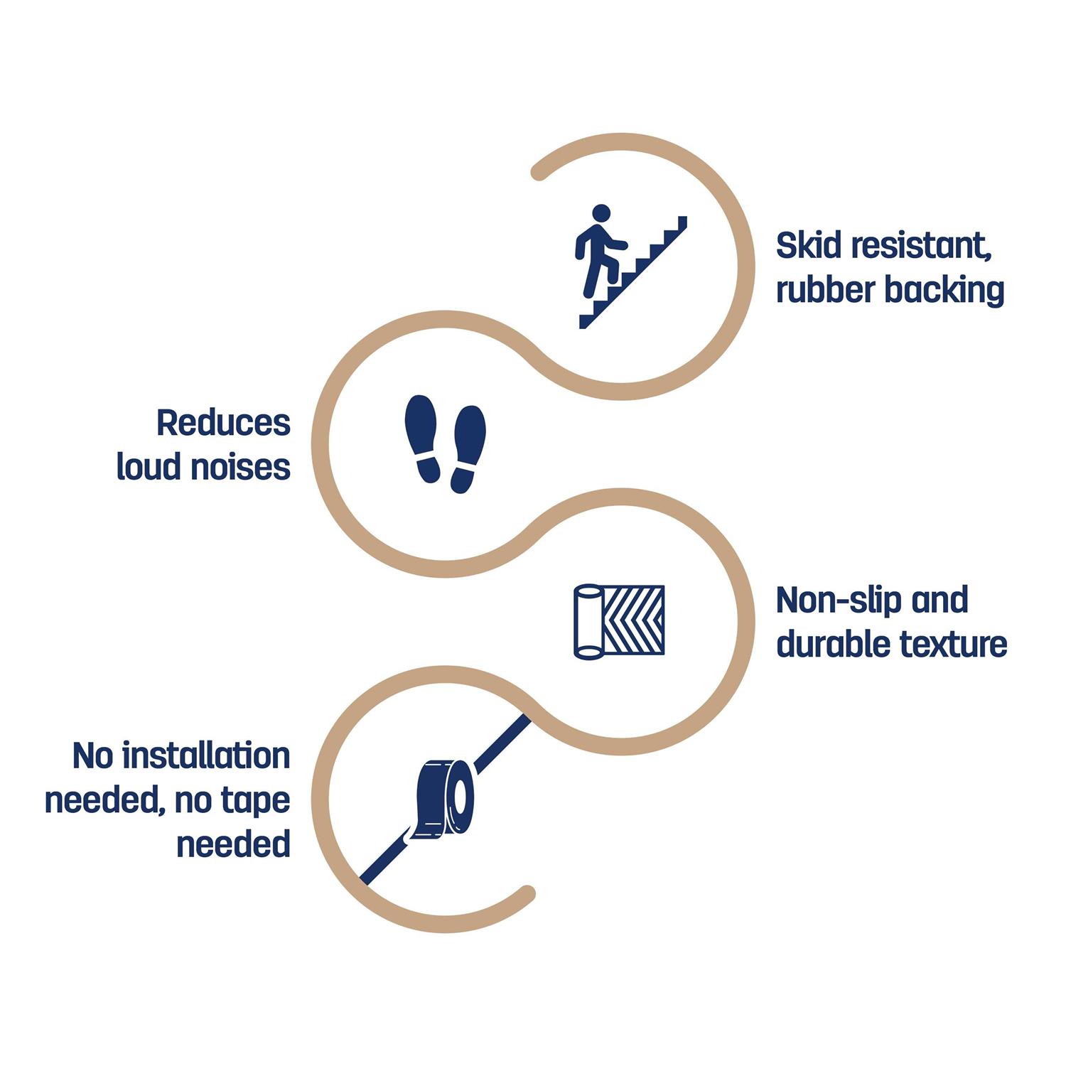 Beverly Rug Non-Slip Washable Runner Rug / Carpet Collection is available different sizes such as Stair Treads for Wooden Steps, Matching Stair Landing Rug, Runner Rug for Hallway, Entryway, Kitchen and Bathroom. Our beautiful solid color variations of beige, black, brown, gray, dark gray and navy complement your furniture very well and brighten up your home decor. You can secure the safety of your family, guests and pets with these anti skid runner rugs with rubber backing that provide a strong grip. This washable runner rug is ideal for high traffic areas such as entryways, hallways, kitchens and bathrooms. Skid Resistant: These runner rugs with rubber backing provide skid resistance and safety grip and are ideal for high traffic areas. Easy to Clean: These stair treads for wooden steps are machine washable and can be easily cleaned with a vacuum cleaner. This washable runner rug for kitchen has a stain resistant feature that makes it easy for you to clean any spills. Matching Sizes: These non slip stair treads indoor and runner rugs have various sizes; you can have matching rugs in your kitchen, bathroom, entryway, hallway. Kids and Pet Friendly: Our stair treads carpet and bathroom runner rug collection provides a safer walking surface and is ideal for homes with children and pets. Premium Quality: This durable hallway runner rug is made of 100% Polypropylene with a high quality backing material.