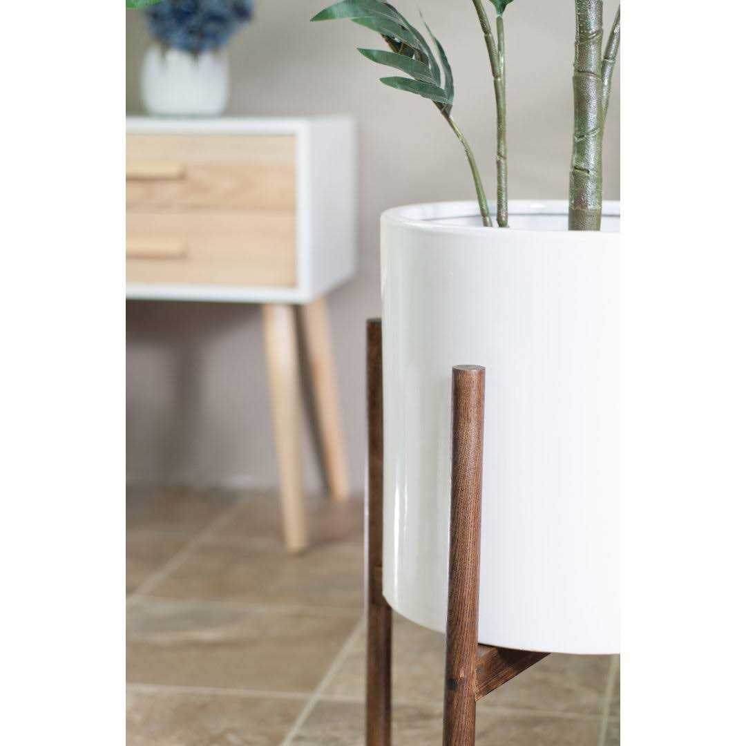 This Mid Century Modern ceramic pot is made of quality Terracotta clay. It is simple and elegant and suitable for indoor usage, this cylinder ceramic planter has a hole in the bottom for drainage. The wood plant stand is made of premium solid wood. This ceramic pot withstand is a mini landscape that reflects the home owner’s personality and aesthetic taste.