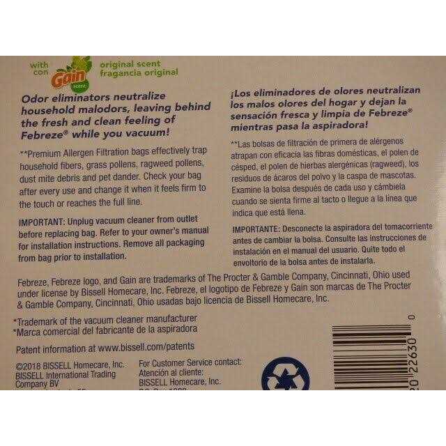 Bissell Febreze with Gain Scent Style 7 Vacuum Bags 17F9G