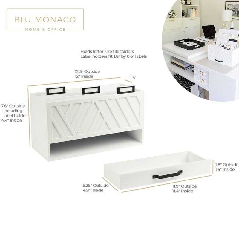 ORGANIZE IN STYLE: Wonder what kind of desk organizers and accessories you should buy? Rid yourself and your home or office of daily clutter with this unique modern large folder organizer, mail sorter, and bill desk supply organizer in white. MODERN TIMELESS DESIGN: The Blu Monaco Decorative Mail File Organizer box is elegant and chic. The popular style of this mail holder is in; time to make it yours! STRONG, WOODEN CONSTRUCTION: Made of wood, this cute desk organizer caddy is made to last with quality construction and design. This white paper desk organizer will look great in your office, kitchen countertop or reception area. UNIQUE AND VERSATILE: Fits Paper or File Folder Horizontally! Don’t put bills, junk mail and letters in a drawer, file them with ease in this in and out mail holder, desk supplies white mail organizer bin storage. Or you can hang it up on your wall. INCLUDES DRAWER: Additional storage for pens, stamps, paper clips and