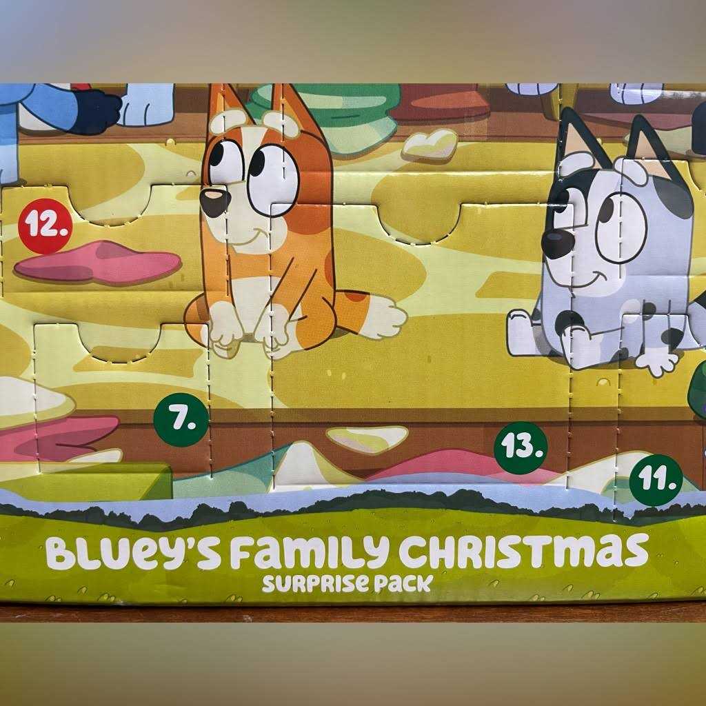 - Join the Heelers as they gather for a classic Aussie Christmas. Bluey’s Family Christmas Surprise Pack has 24 surprises behind 24 different windows.