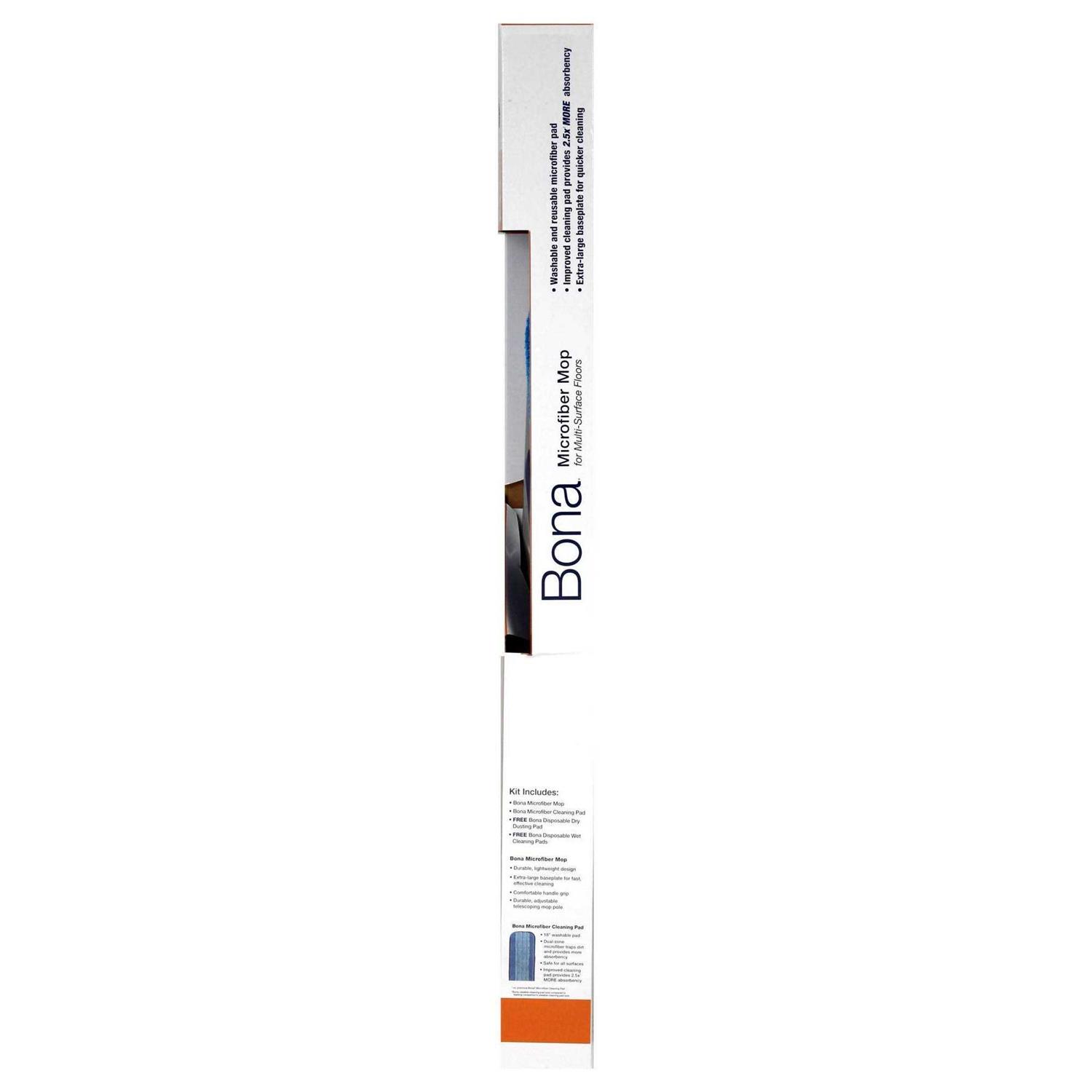 The Bona Microfiber Floor Mop with a durable telescoping mop handle and extra-large mop head provides an easy and quick way to clean your floors. The Bona Microfiber Cleaning Pad features a unique design with dual zone cleaning action. The dark blue outer fibers break up grime while the inner light blue fibers trap and absorb dirt.