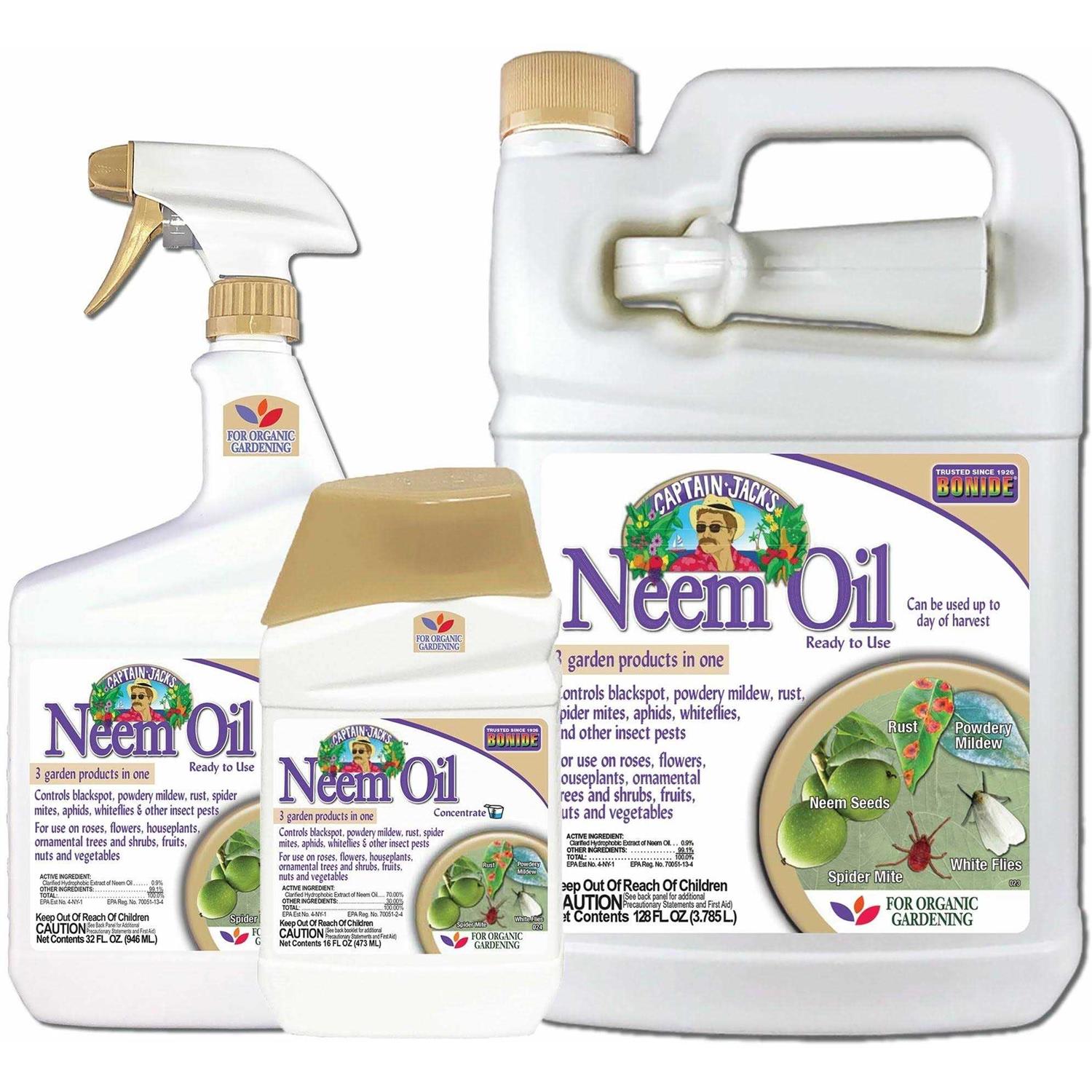 Protect your lawn and garden with neem oil from Captain Jack’s. The active ingredient, clarified hydrophobic extract of neem oil, is an effective multi-purpose fungicide, insecticide and miticide. Captain Jack’s neem oil ready-to-usesSpray is approved for organic gardening and can be used up to the day of harvest. For use on a variety of plants in your lawn and garden including roses, flowers, houseplants, ornamental trees and shrubs, fruits, nuts and vegetables. This product controls listed insects by killing at the egg, larvae and adult stages. Controls listed insects including spider mites, aphids, whiteflies and more. With neem oil, prevent and control diseases like powdery mildew, blackspot, rust and more. This product arrives conveniently ready-to-use with an attached trigger sprayer. For best results, shake well and apply to affected plants until the point of run off. Reapply every 7-14 days as needed.