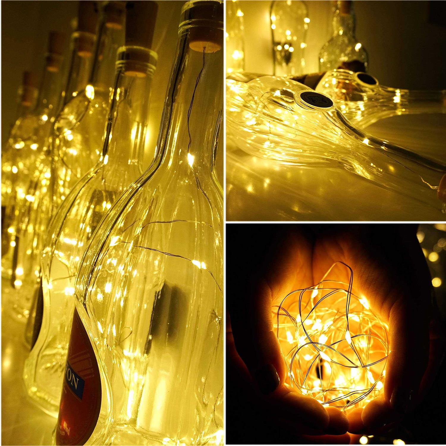 DIY&Batteries Powered: Easy to enjoy DIY fun. Copper wires Easily Designed to any DIY Shape You Like. Powered by 3 LR44 batteries(included) with extending long life : 25 hours when in continuous lighting. Easy to Operate: No more complicated and drive-you-crazy change of batteries with screwdriver. our cork light come with a buckle cover, Simply installed. you just need to pull up the insulating strip and turn on and off switch. Switch on, you could enjoy these glaring fairy 20 leds cork lights. UNIVERSAL CORK SHAPE :(cork diameter: 0.65 Inch to 0.9 Inch) fits most standard bottles, for table centerpieces decor in Halloween, birthday,weddings, parties, anniversary, Christmas, Thanksgiving Day. 360° sparkling for a beautiful effect. Perfect lightings for wine bottles. Also a good gift for your Kids, Friends and Families. 100% QUALITY GUARANTEE 30 DAY BACK MONEY GUARANTEE- Please rest assured that you have made the right purchase. If you have any problems, please feel free to contact the seller directly