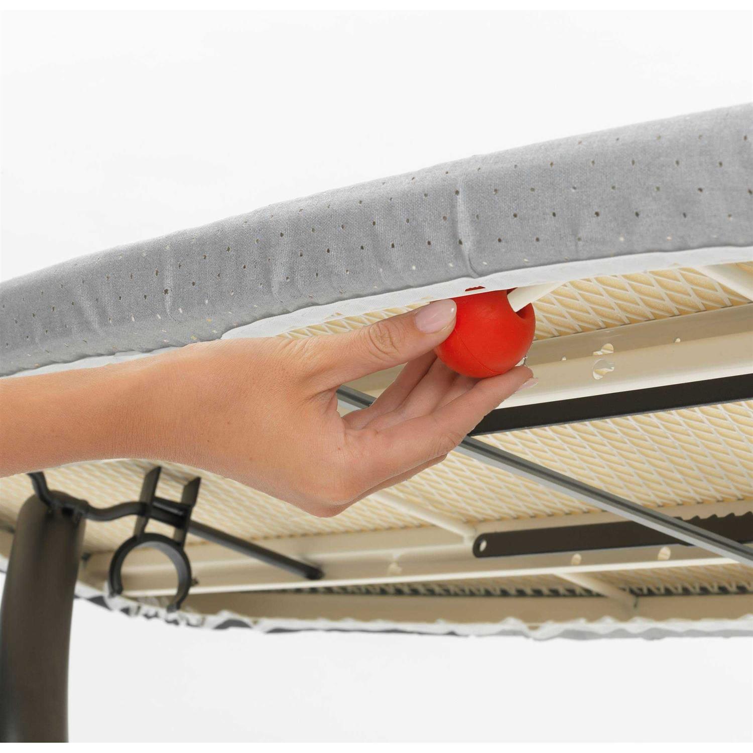 The ultimate ironing board: This Brabantia ironing board features an integrated heat resistant parking zone to rest your iron and a heat reflective silicone cover for faster, easier ironing. This silicone cover reflects the heat back up in to your clothes as you iron, giving you a much easier iron. This comes with a cord binder and stretch system for a taut finish. The sturdy, asymmetric 35mm frame is adjustable from 61-102cm for your ideal working height. There’s a child safety lock to prevent the ironing board from collapsing accidentally and a transport lock for easy handling. This board is also shaped perfectly for you to iron sitting down. Protective non-slip feet caps prevent damage to your floor.
