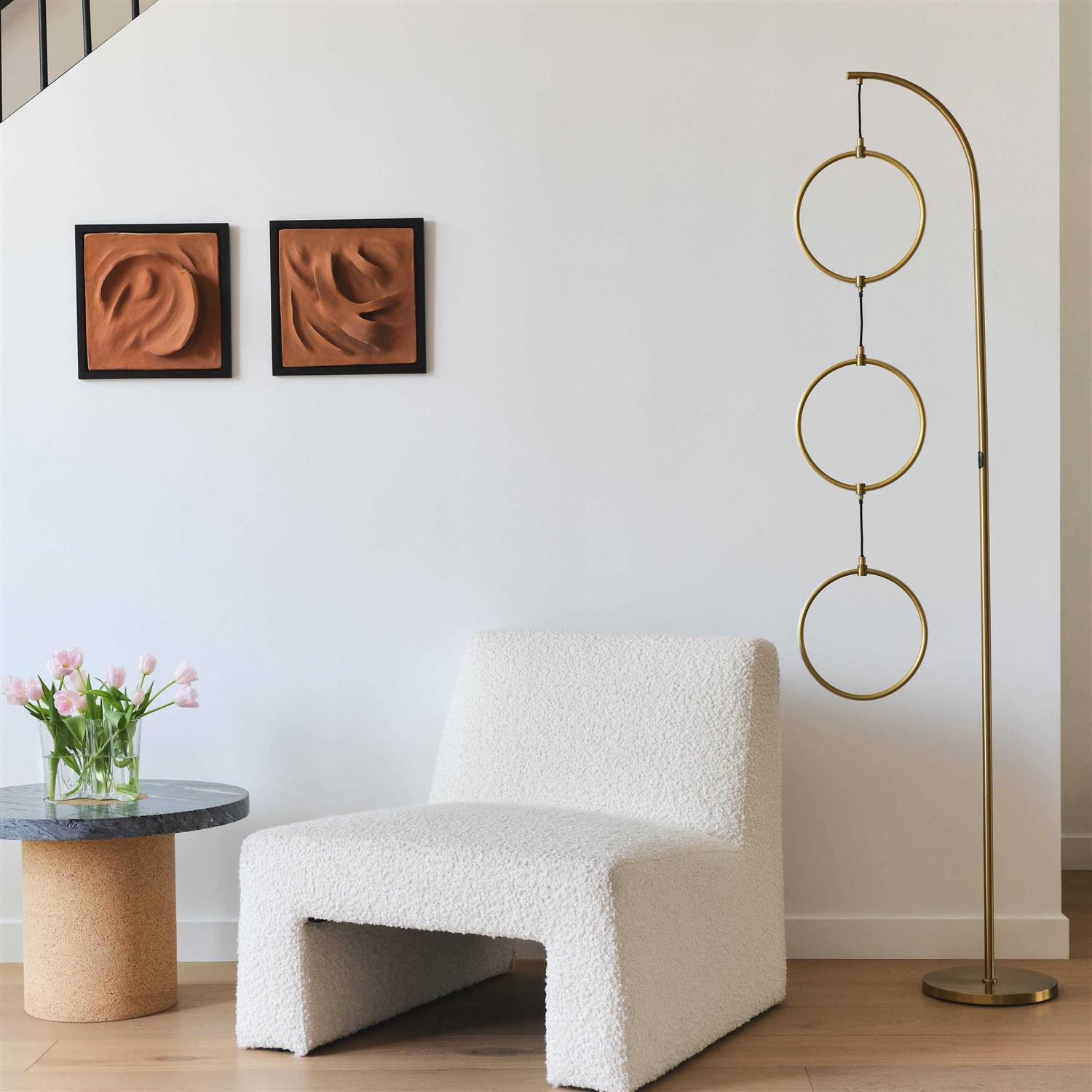 The Brightech Nova floor lamp is a unique arc lamp with a modern and sophisticated touch. Perfect as a centerpiece, this living room lamp has a bold look that’s sure to impress friends and family. Built with a curved brass stem and three hanging light rings, this floor lamp for bedrooms has a distinct look that you’d expect from much more expensive lighting options. The LED floor lamp has a built-in dimmable touch switch for convenience and includes an integrated LED light for excellent illumination. The bulbs in the modern floor lamp last up to 20,000 hours, so you can be sure to have years of light. Plus, it takes less electricity than other bulbs, so your utility bills will drop compared to incandescent and halogen bulbs. Try placing the modern floor lamp over the sofa for reading or adding it to the middle of the room to show off its elegance.