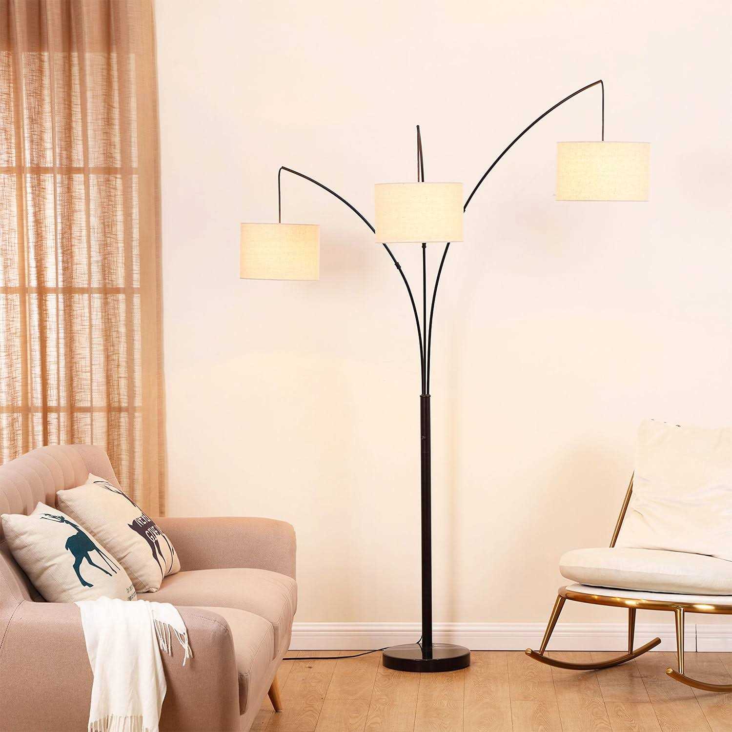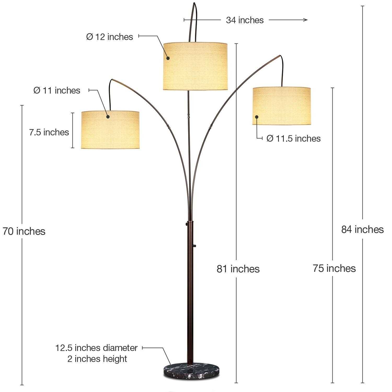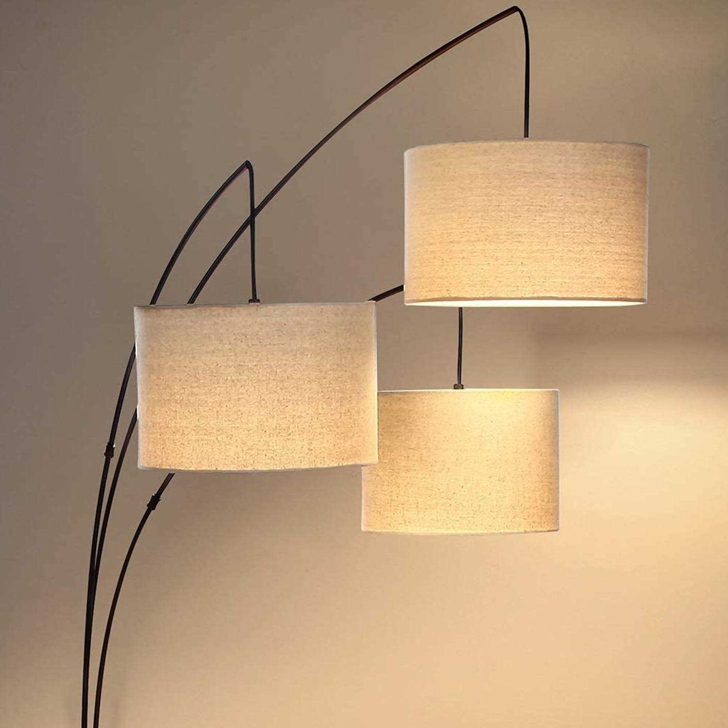 Lend your dining room, living room, or bedroom a handsome floor accent and plenty of wide-reaching light with the Brightech Trilage Arc Floor Lamp. Minimalist enough for modern decors and featuring warm, rich colors and materials for more classical settings, this floor lamp is easy to add to any home. A metal frame supports the living room floor lamp, featuring an oil-rubbed bronze finish with 3 branch-like bowed arms that can be adjusted to any angle for reading or lighting an entire room. Each socket is designed for a 9.5-watt bulb that produces 3000K warm white light. 3 bulbs are included, each designed to last up to 20,000 hours. Beige linen drum shades are included to help soften and diffuse the light for a calm, casual mood. The 3 light floor lamp features a 3-way rotary switch that lets you easily control the number of lights with a flick of the wrist.