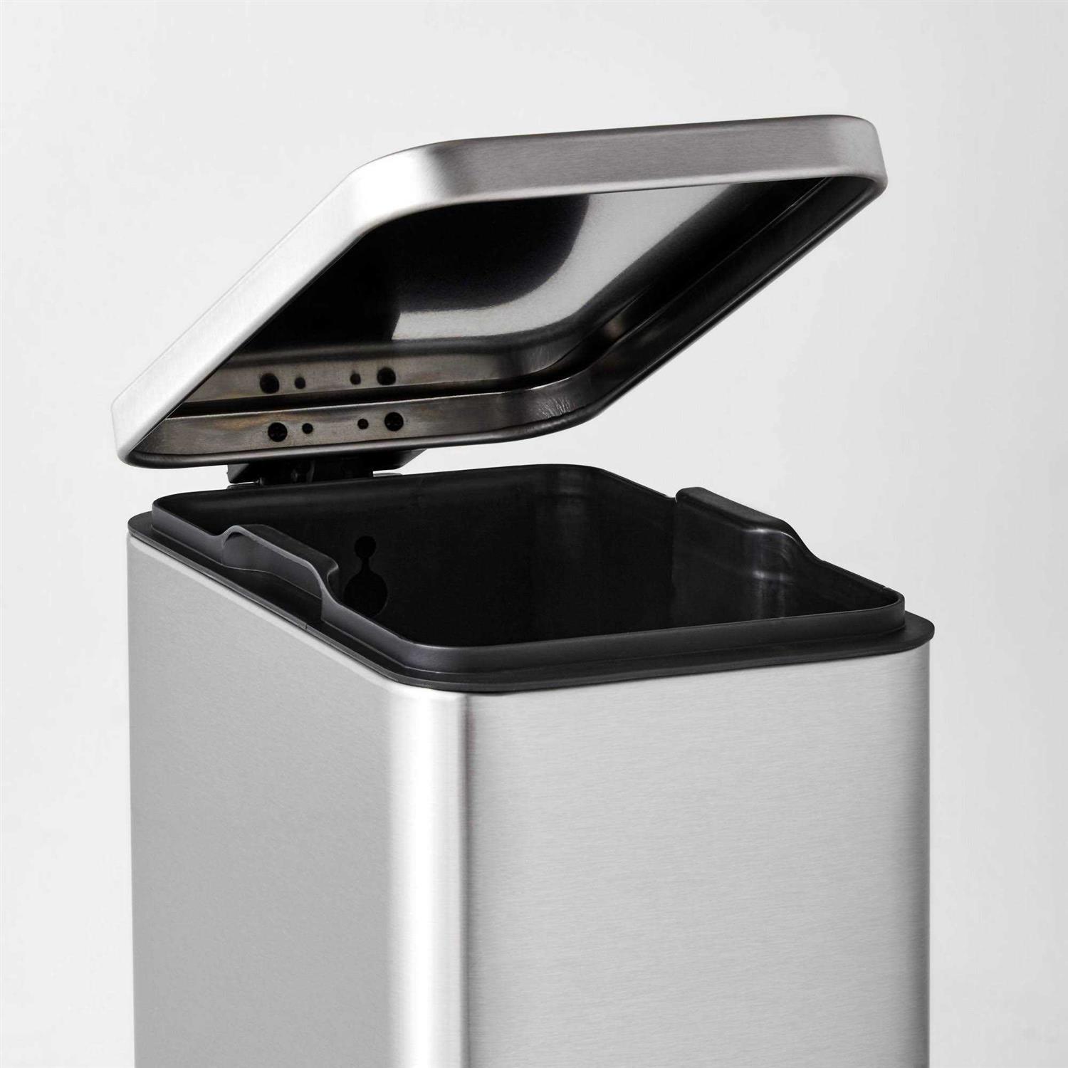 The stainless steel design makes it a great choice for daily use, while the pedal-operated soft-close lid allows for convenient hands-free disposal. With a removable liner for easy cleaning, it features a sleek design in a brushed fingerprint-resistant finish that adds chic style to your decor, so you won’t mind keeping this functional can on display in the kitchen, mudroom or home office. Brightroom started with a simple truth: When you’ve got it together, you feel better. Our versatile designs reveal the possibility in every closet, cupboard and drawer, and work together to create brilliant ways to organize your every day. Overall Width: 6.8 inches Overall Height: 12.4 inches Overall Depth: 14.4 inches Width of Pedal: 3.6 inches Depth of Pedal: 1.7 inches Height of Trash Can with Lid Open: 23.8 inches Overall Width: 6.8 inches Overall Depth: 14.4 inches Width of Trash Can Opening: 6.8 inches Depth of Trash Can Opening: 14.4 inches Width of Pedal: 3.6 inches Depth of Pedal: 1.7 inches