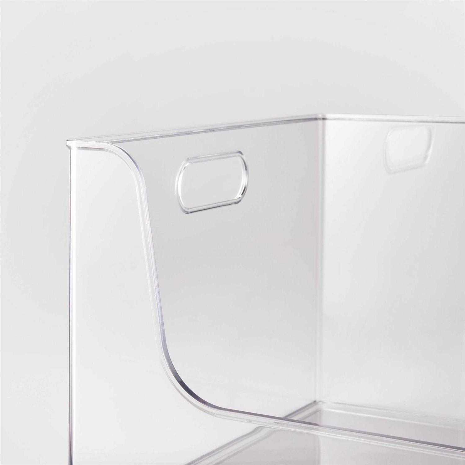 Streamline and organize home office desktops, shelves and closets with the All Purpose OpenFront Storage Bin from Brightroom. The 12 x 12 x 8 design provides plenty of space to store office and crafting supplies and more in one convenient place. The clear plastic construction lends a clean, modern look, and the front panel dips down so you can access what you need easily. Plus, its easy to see whats stored inside. This allpurpose storage tray is convenient and useful for keeping clutter under control, and its uses are endless. Brightroom started with a simple truth When youve got it together, you feel better. Our versatile designs reveal the possibility in every closet, cupboard and drawer, and work together to create brilliant ways to organize your every day.Dimensions Overall 8 Inches H x 12 Inches W x 12 Inches DCare Cleaning Hand Wash