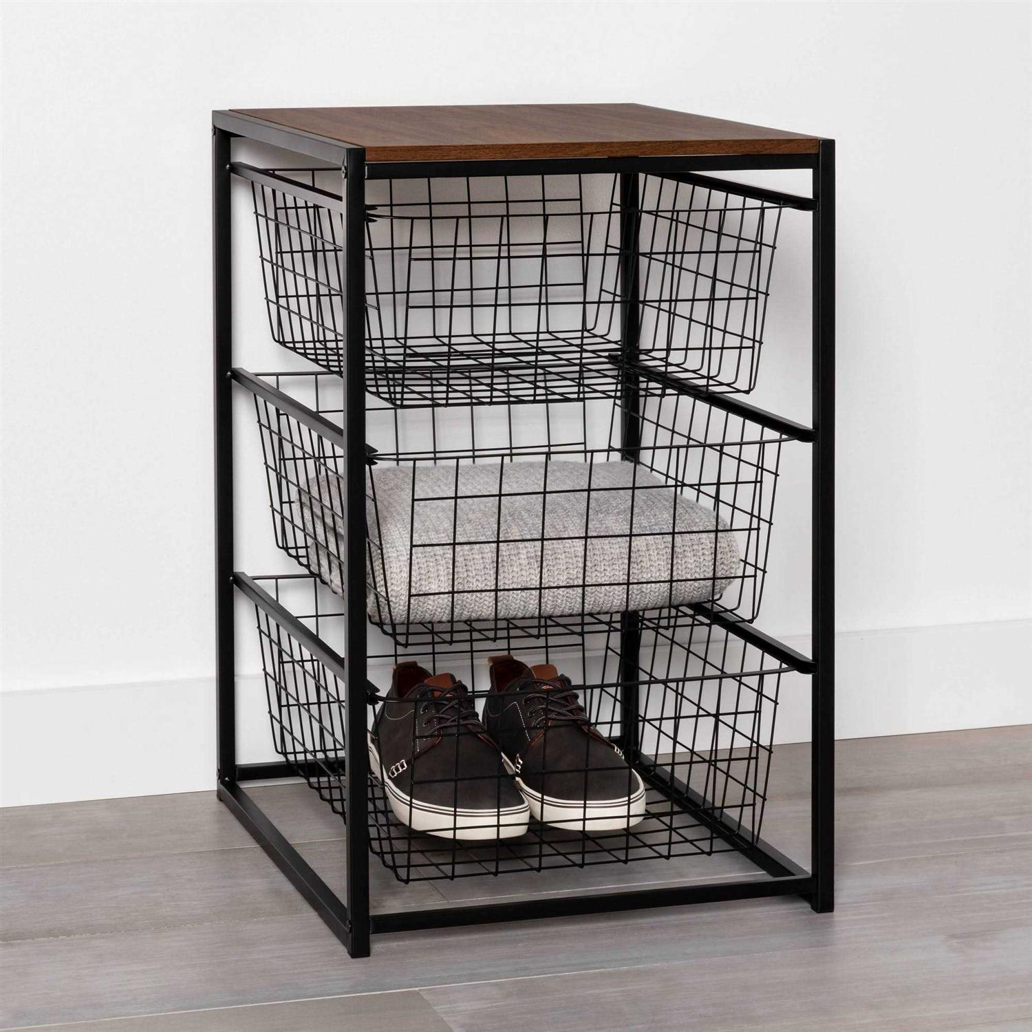 Organize your clothes and shoes with ease with this 3-Drawer Organizer from Brightroom . This metal closet organizer brings practical storage to your space. It features a vertical design with three spacious slide-out drawers to provide ample space for universal storage, and the wood top creates attractive space for display. The wire frame construction provides ventilation and the color selections can easily coordinate with any décor aesthetic. Brightroom : See your space in a new light.