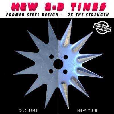 - NEW 3-D Tines for 2X the Strength: Brinly’s Patent-Pending 3-D tines in galvanized steel inhibit rust and resist bending, even in compacted soil