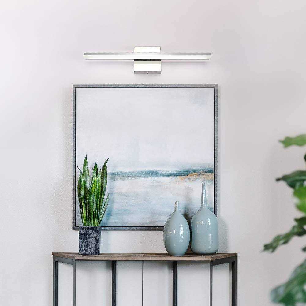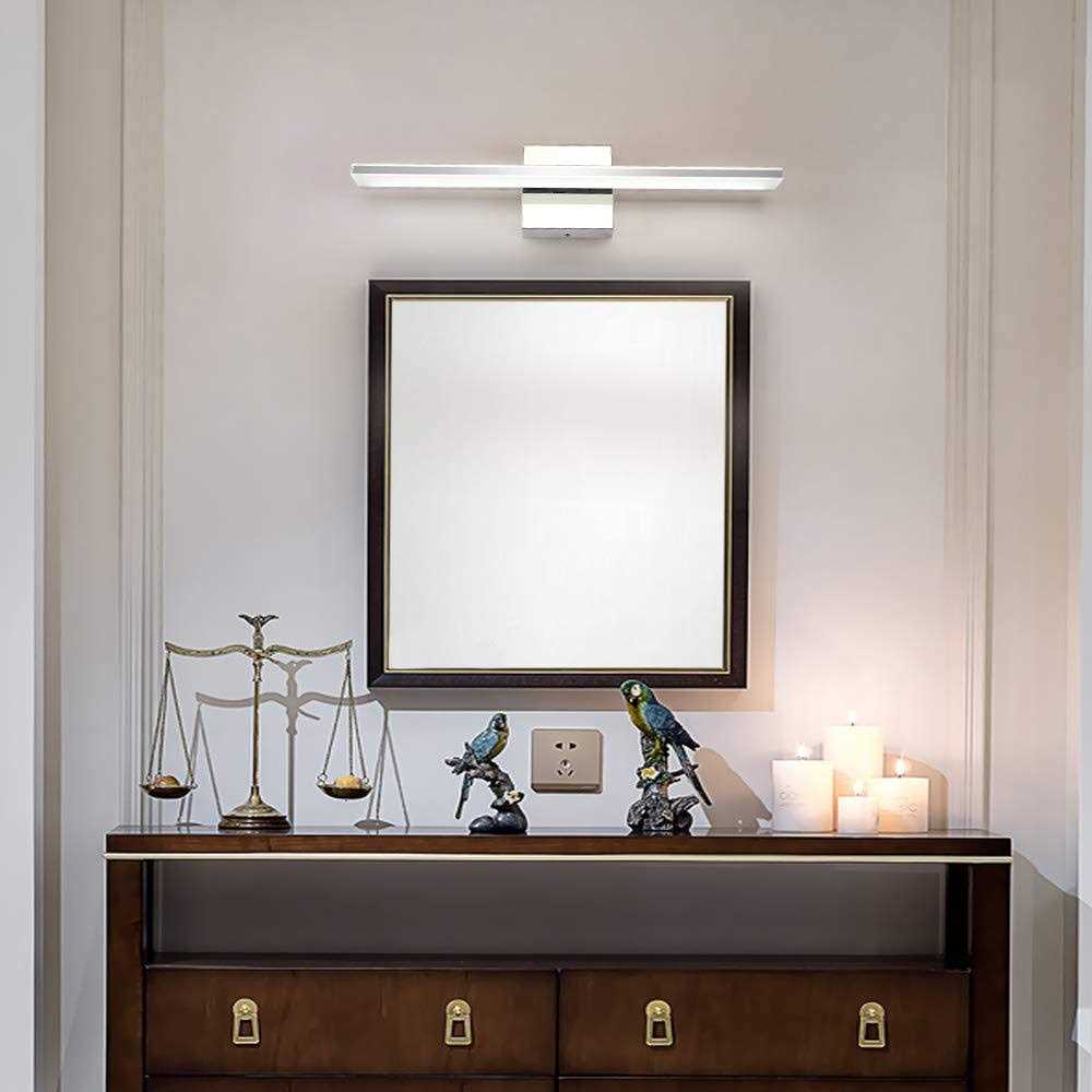 Vanity Lights by BRIVOLART. Details:Specifications: 1. Size:19.68″ long, extends 3.22″ from the wall 2. Backplate: 4.33″ *4.33″ 3. Material: Chrome Stainless Steel + Acrylic 4. Wattage: 12 W 5. Input: AC100-240V,50/60Hz 6. Output: 240mA±5%,39-54V 7. Lumen: 800 lumen 8. Ra: >80 9. Light source: high quality SMD2835 LEDs 10. Light color: Daylight White Light(6000K) 11. Light direction: Down light 12. Durability: 2 years 13. ENERGY SAVING : A + 14. Service Life: approximately 50,000 hours 15. Safety Certification: CE / ROHS/ QCQ/FCC Application: Suitable for bathroom vanity lights, bedroom vanity lights, makeup vanity lights and picture front lights, stair lights, etc.. Works well in damp environment( indoor) Safe and Professional Package Thickened and hard cowhide carton packing provides the most intimate protection for your product.