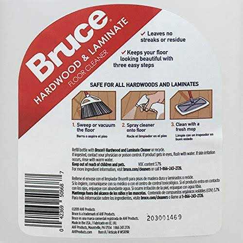 Lifts soil from the surface of the urethane finish Good for spot and routine cleaning No rinsing and no dulling film Ready-to-Use formula For routine cleaning of all no-wax hardwood and laminate floors Color : Green Size : 32 oz Bruce 64 oz. Refill. No-wax hardwood floor cleaner lifts soil from the surface of the Urethane finish without leaving a film. Use this liquid cleaner for overall cleaning or spot cleaning. Superior craftsmanship and state-of-the-art finishes assure you will spend your time enjoying your new floor, not caring for it. Simple vacuuming and an occasional cleaning as needed with Bruce hardwood and laminate floor cleaner will keep it looking like new.