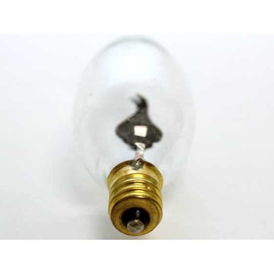 Chandelier bulb that offers the appearance of a real flickering flame. Energy saving uses only 3 watts flickering flame effect. Candelabra bases avg hours: 2500, base: E12, beam spread: 360 Bulb, type: incandescent color, temperature: 2700K, CRI: 100, equivalency: 3W, finish: flicker.