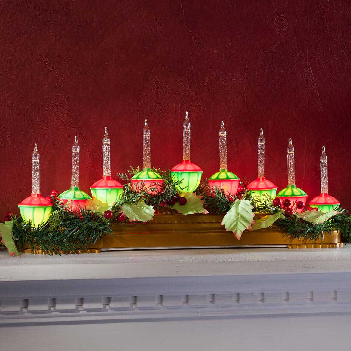 Crafted with a stylish, art deco-inspired base; adorned with realistic berries and greenery. Atop sit nine merry red and green bubble lights. On/ off switch. 193/4L x 8H with 60 cord. UL listed. Imported.