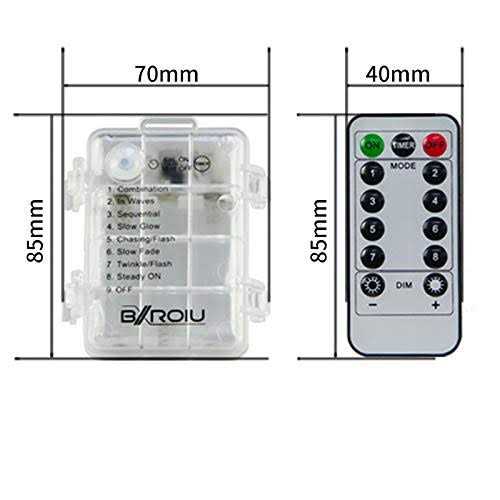 Make sure this fits by entering your model number. [Remote control of 8 modals] remote control of 8 modals with different light types: wave-type change, continuous change, change of flicker, single light gets brighter and darker, slow-flash change, dreamlike change, burst flash, always bright. [timer modal] Humanized timing function. After pressing the button of timer, string light flickers one time, indicating the successful setting, fairy light will be turned on automatically for 6 hours and turned off for 18 houes each day, if you stop the function, it will suspend [variable forms] high quality, thin and flexible silver wire, easy to bend into various forms, just need 3 AA size batteries(not included) [application decoration] Suitable for indoor and outdoor use, create warm, romantic and relaxed atmosphere for for your courtyard, garden, stairs, hallways, courtyard, bedroom, wedding, party, Halloween, and Christmas. [high quality Silver wire] be thin and flexible. Easy to bend and twine plants, handrail, scutcheon, furniture and others