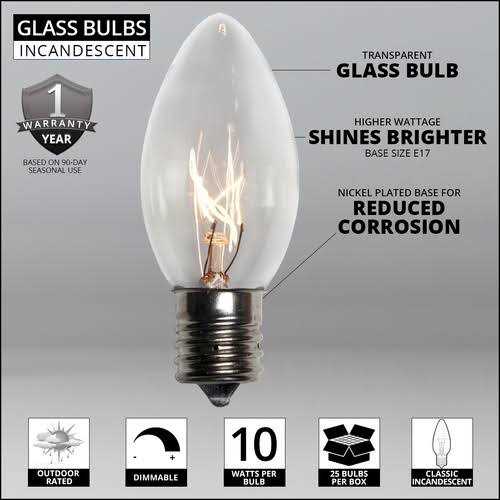 Wintergreen Lighting WG-42735 C9 Transparent 10 Watt Christmas Light Bulbs, Clear – 25 pack