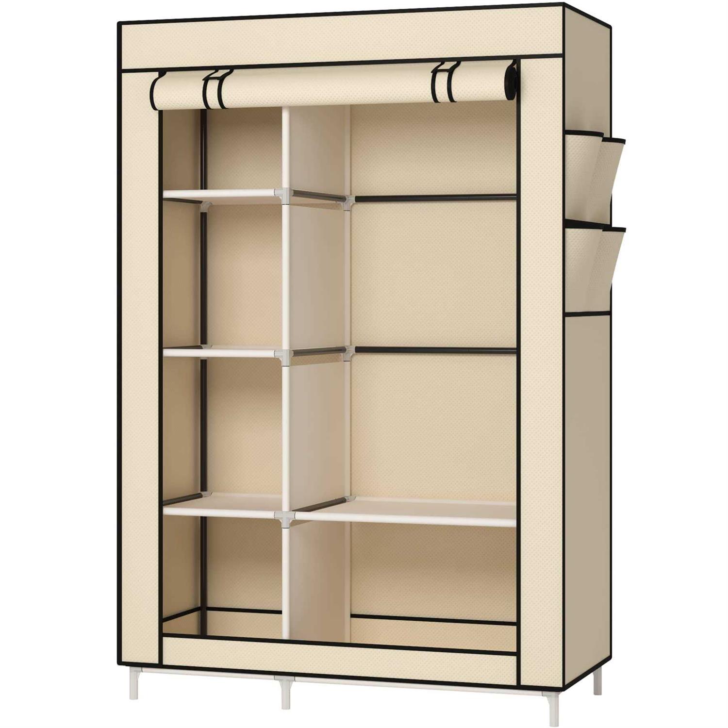 Calmootey Closet Storage Organizer,Portable Wardrobe with 6 Shelves and Clothes Rod,Non-Woven Fabric Cover with 4 Side Pockets,Beige
