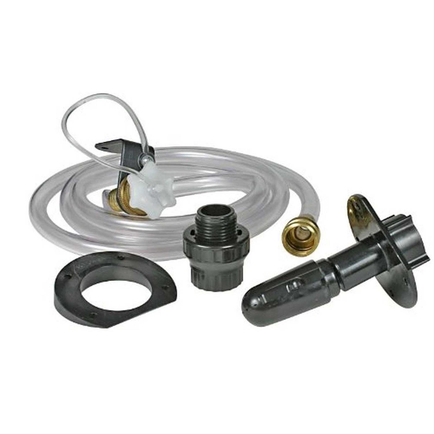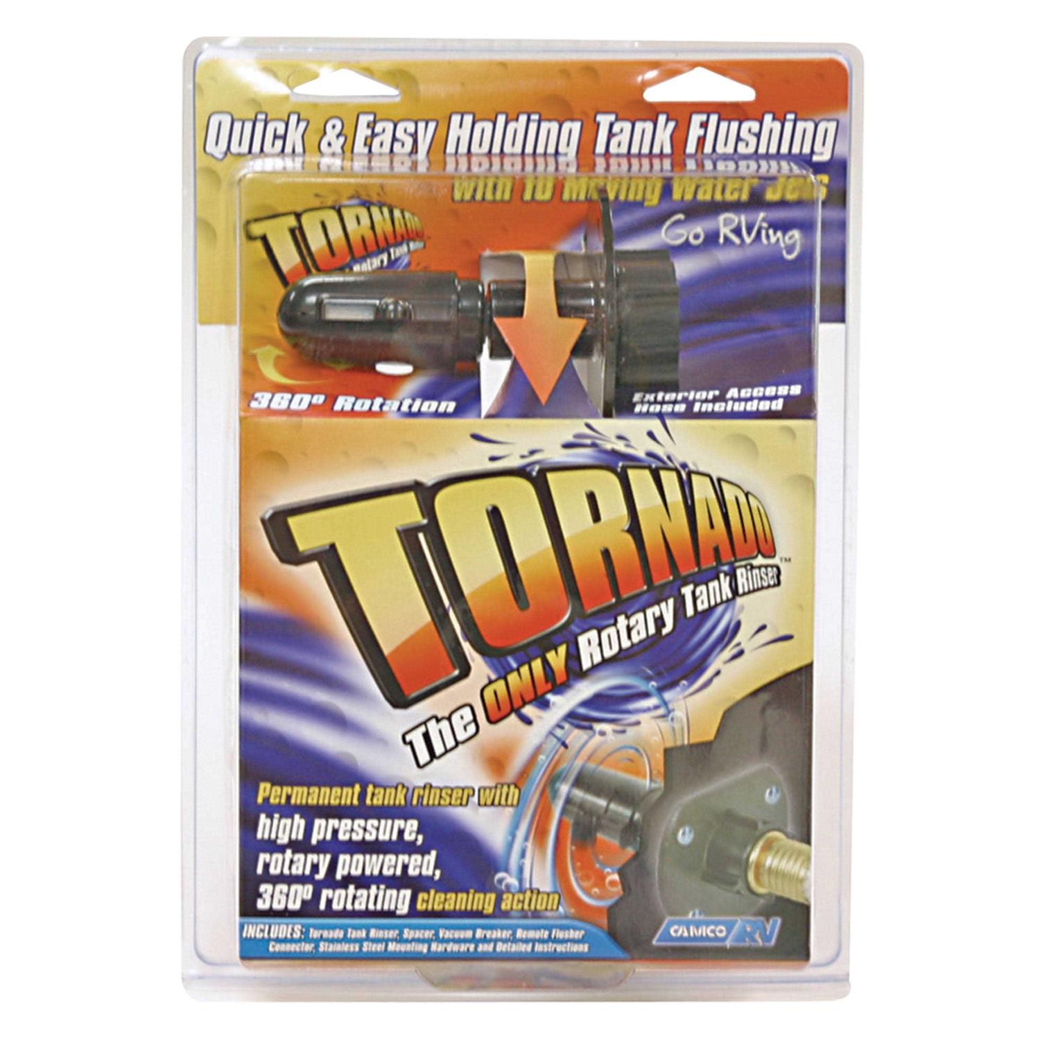 Camco 40126 Camco RV Tornado Rotary Tank Rinser with Hose helps to reach every area of your holding tank. This permanent tank rinser with 360-Degree rotating head and multiple high-pressure nozzles is the easiest, most sanitary way to clean your holding tank. No need for hoses through the windows or devices stuck down toilets. Includes a backflow preventer and 6′ exterior access hose for quick hose connection with no mess. Patented.