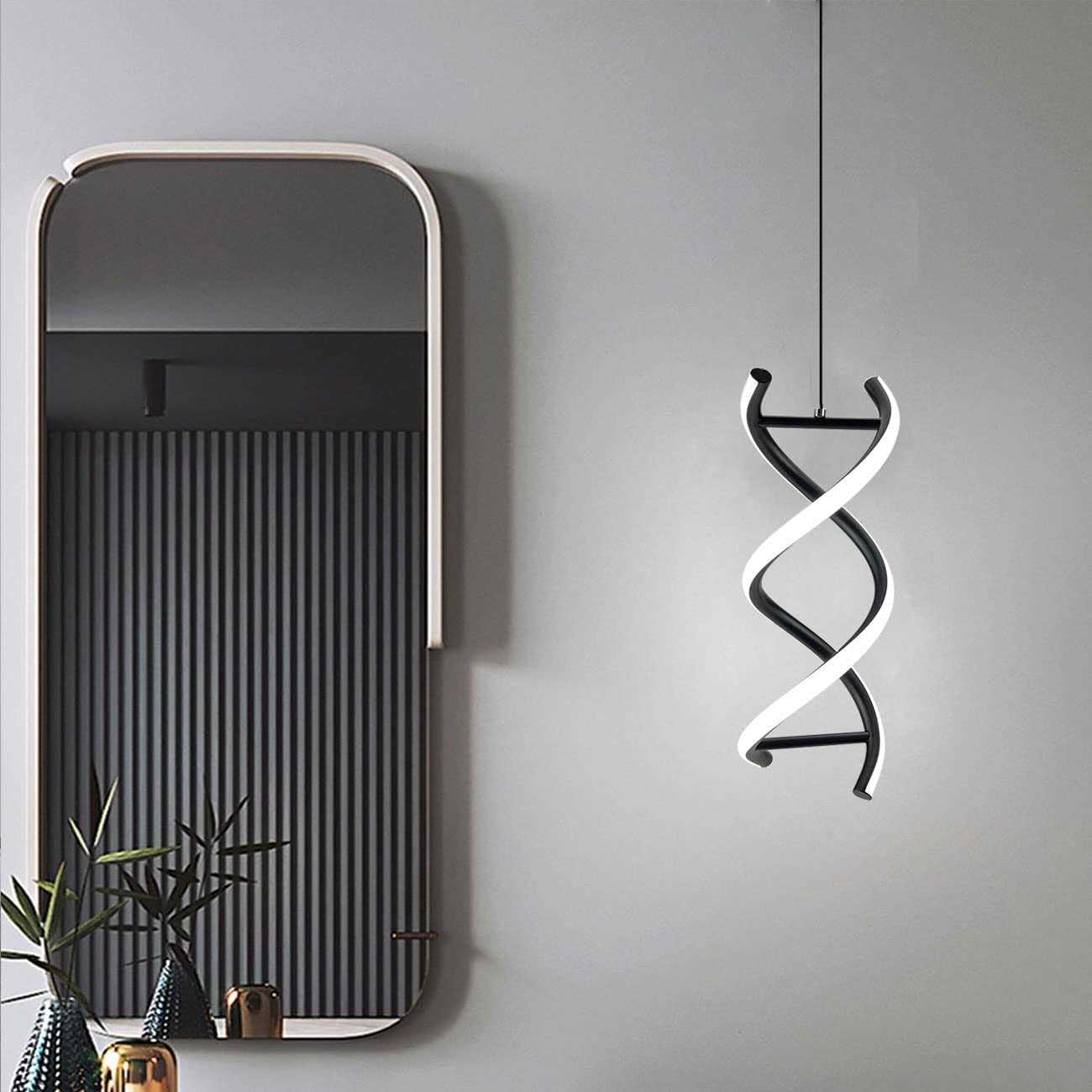 FASHION DESIGN – Modern pendant featuring a unique interlocking spiral design with a modern and avant-garde style, gives you a fashionable home atmosphere and will never be outdated. ADJUSTABLE HEIGHT – The maximum height of the chandelier is 47in(120cm). The length of the rope can be freely adjusted to meet your different needs, it can perfectly fit any height of your ceiling. Suitable for slope ceiling. WIDELY APPLICATIONS – Island pendant light fixtures With 5500K cold white light ,it ideal for Kitchen islands, Dining Room, Bedroom, Hallways, Restaurant, and Bar or Cafe. HIGH QUALITY – The pendant light fixture is made of aluminum and pvc, not easy to scratch and rust, long lasting use, simple and high-end design style to embellish your modern home. The pendand lamp is pre-assembled, you just need to adjust the desired height, then wire it.