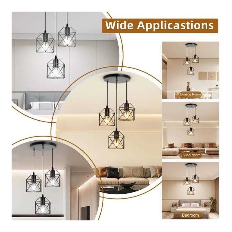 CANMEIJIA 3-Light Pendant Light Fixtures, Farmhouse Kitchen Island Light Fixture, Industrial Hanging Pendant Lighting for Dining Room Bedroom, Black
