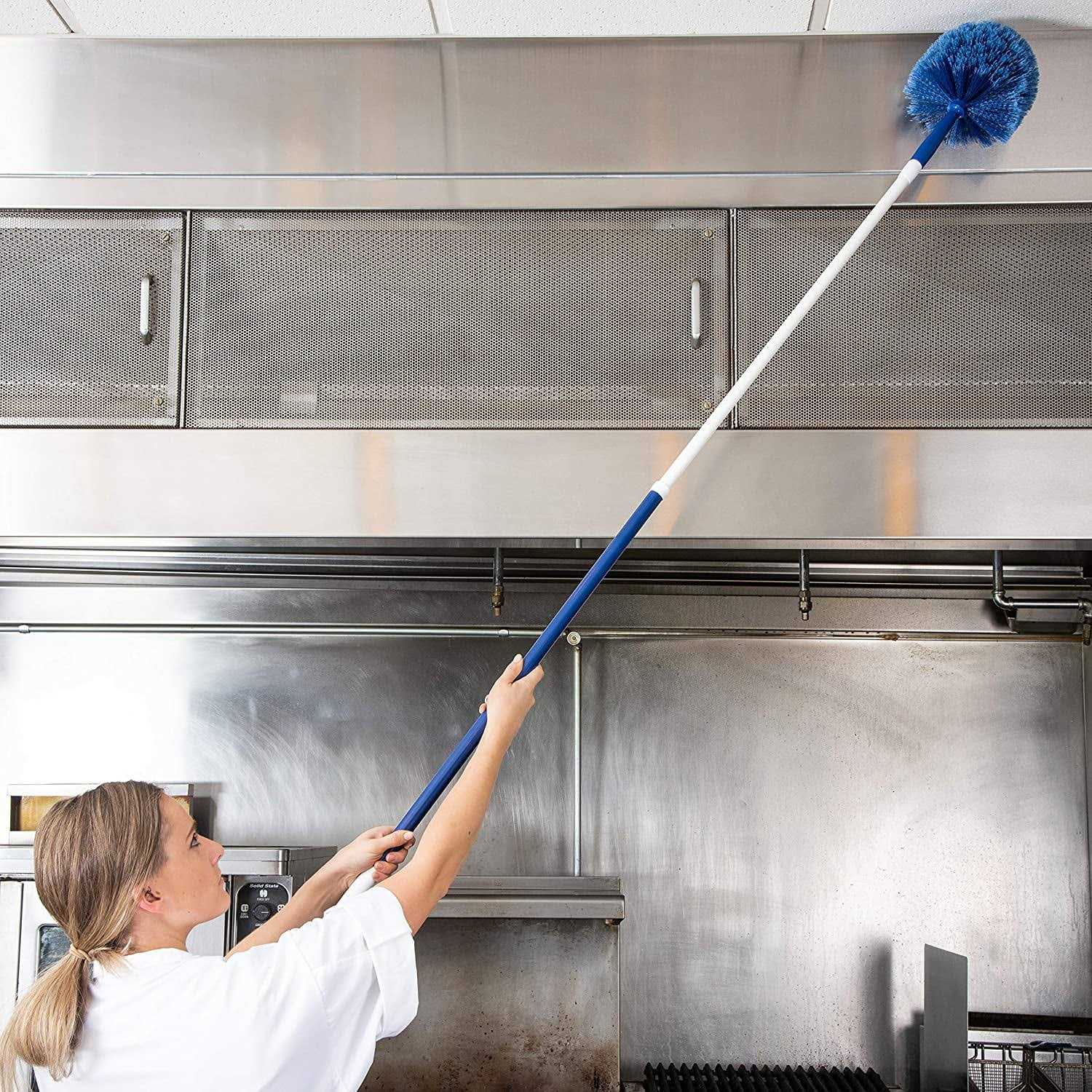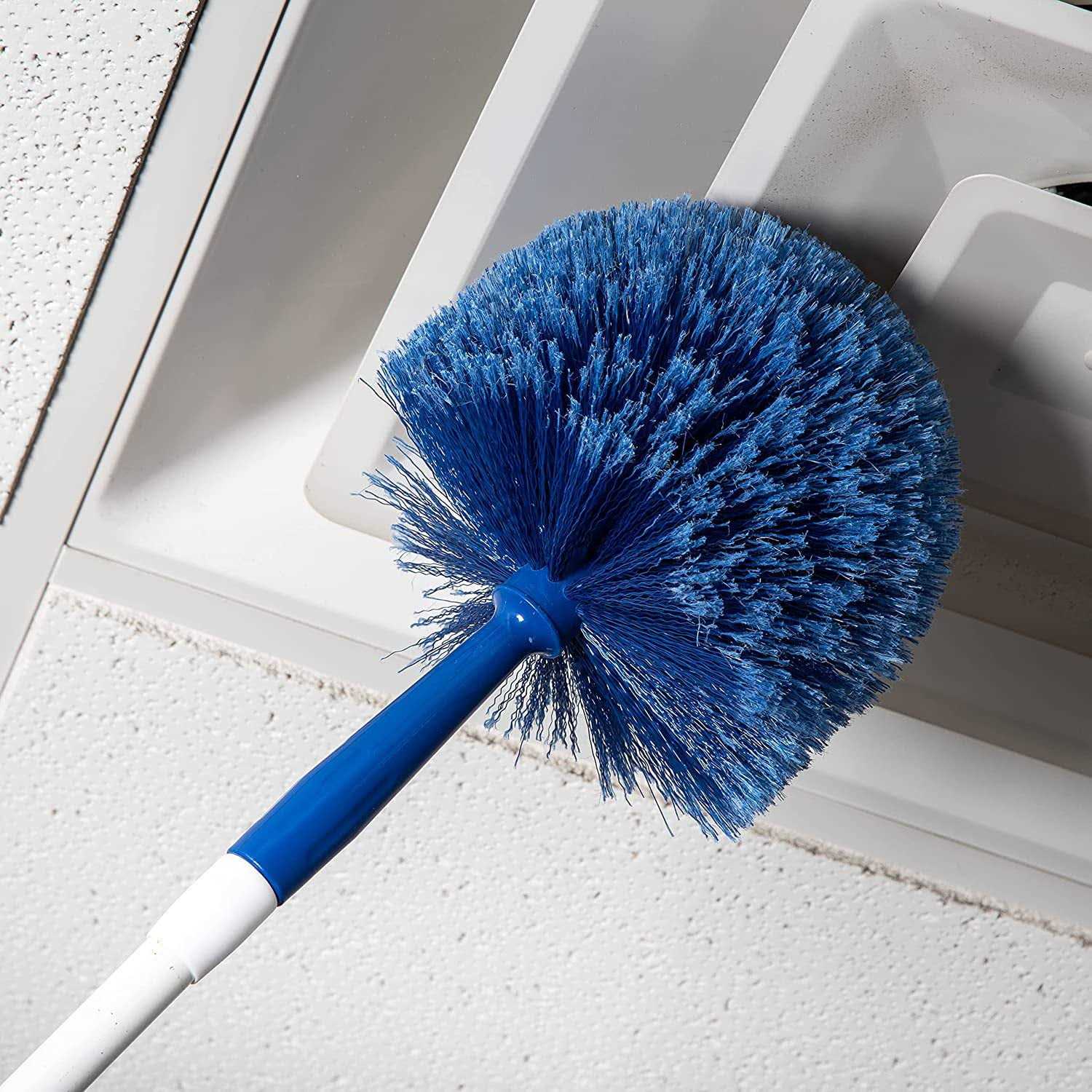 - Rounded, soft plastic bristles for reaching ceilings and into corners