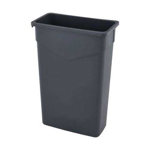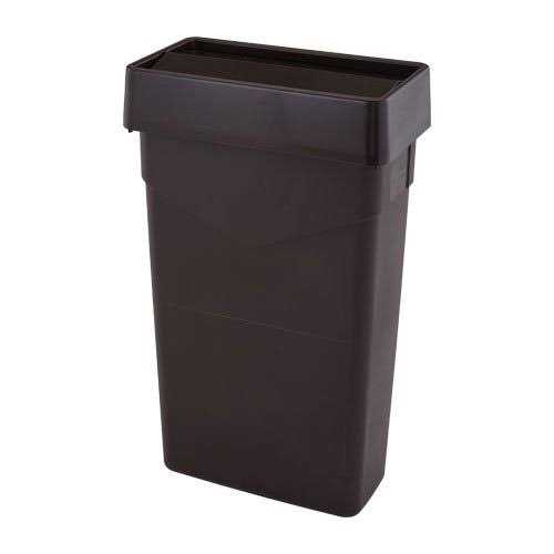 Green waste container for use in offices and other settings with narrow spaces Measures 29.88 x 20 x 11″ for a capacity of 23 gal. LLDPE plastic for strength and resistance to stress cracking and chemicals Corner tabs for keeping trash bags in place Underside hand grip for safety and control during lifting and emptying tasks Carlisle TrimLine 23 gallon waste container is design fits neatly beside work tables or in narrow spaces. Containers feature heavy duty plastic construction for easy cleaning. Corner tabs help keep trash bags secure. Helper handle on the bottom makes lifting and dumping easier. BPA free. Made in USA. Base measures 17.05-inches length by 8.06 width. Top measures 19.92-inches length by 10.87-inches width. 29.50-inches depth. Measures 20-inches length by 11-inches width by 29.88-inches height.