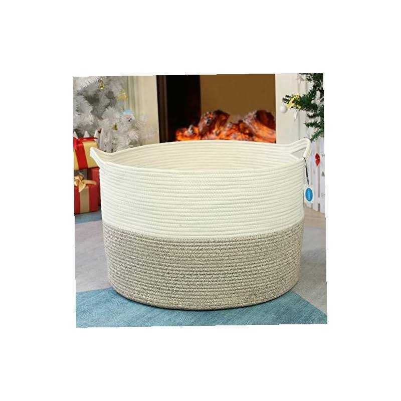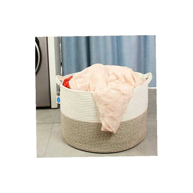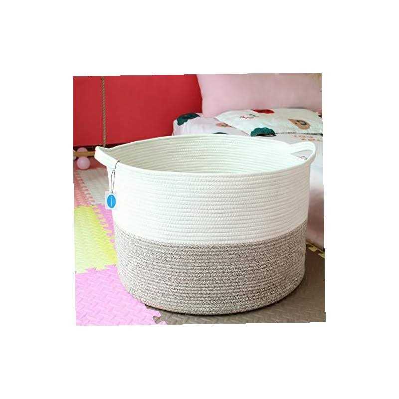 Soft Cotton Woven Thread Rope XXX Large size: 21.7″ x 21.7″ x 13.8″, which perfect for throw pillows, blankets, Comforter or Cushions Versatility: This Extra Extra Extra large cotton storage container can hold, games, art/craft supplies, clothes and more. Keep in family room, or any room in the house Durability handles design, foldable, easy to move and take away, free awesome practical cotton large storage baskets.