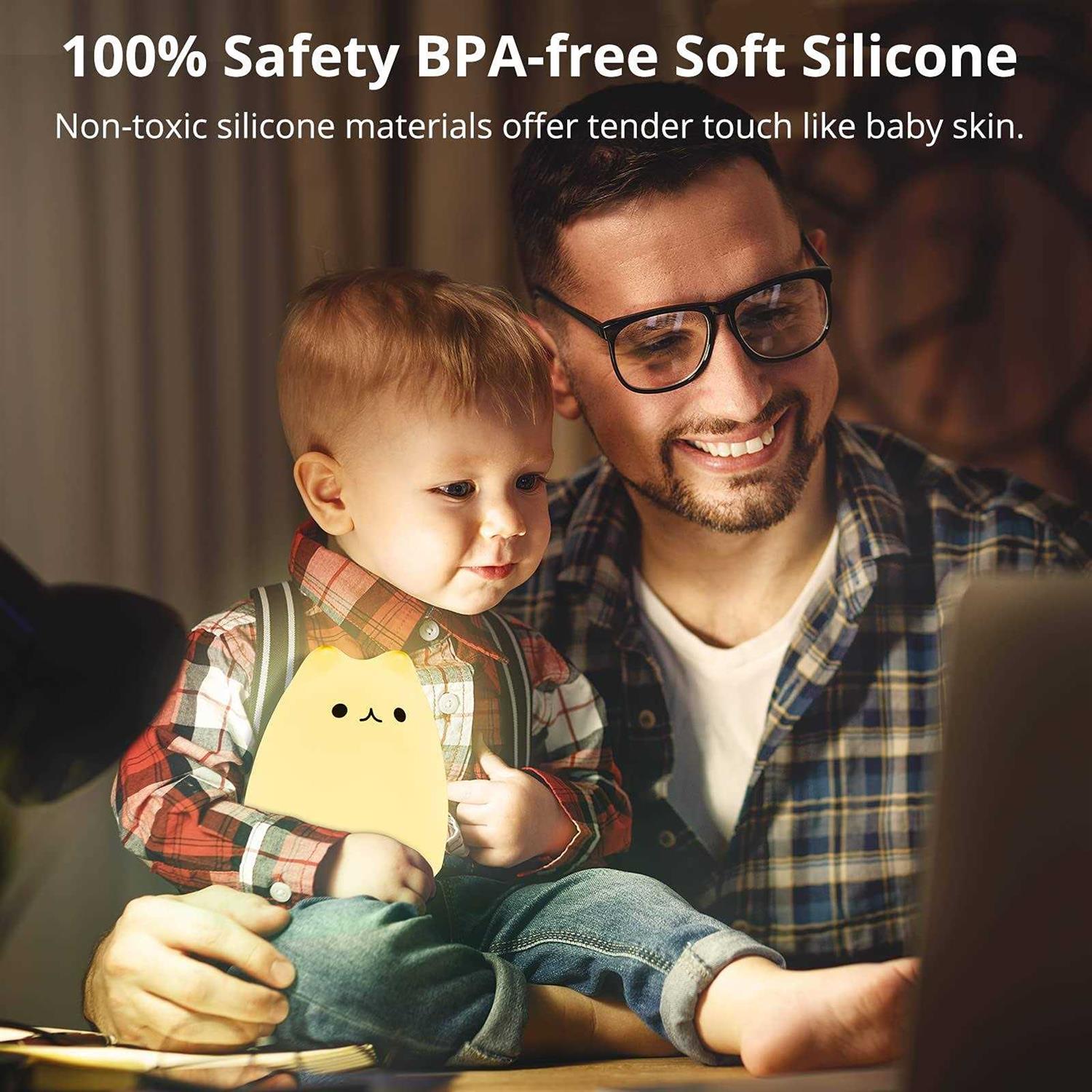 Dual Light Modes&Tap Control: Press the main power button on the bottom to turn it on/off. Tap the soft silicone surface to switch among normal white light mode, 7-color breathing light mode and standby mode, making it a romantic sweet nursery baby night lamp companion. Pretty sensitive vibration sensor allows you to control lights at will. |Lovely Kitty Face: Super cute cat face made by BPA-free washable silicone gives a pleasantly soft touch. Handheld size and eco-friendly design make it a perfect bedroom, study, baby room night decor as well as a fabulous gift idea especially for kids, girls and ladies. |All-Night Companion: Built-in 1200mAH lithium battery supports portable usage up to 15 hours with one full charge. With soft light, it keeps your beloved ones company as a tender guardian all night long. |Save&Safe: One full charge(5V/0.5A) takes about 3 hours. The indicator keeps red when charging, turns off when done. Please keep the kawaii cat nursery lamp in dry condition and do…