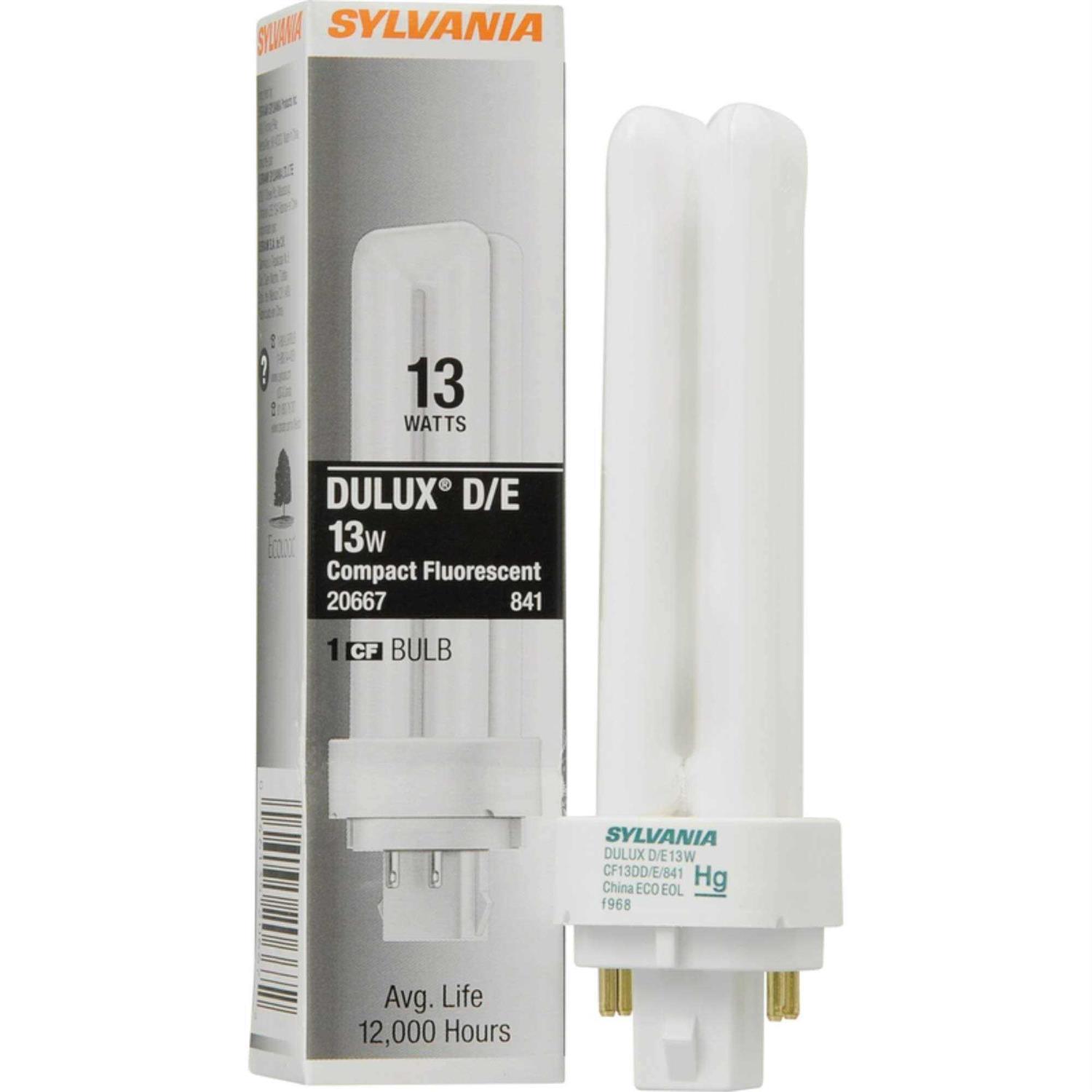 Sylvania Dulux D/E EOL Ecologic lamps are long-life, energy-saving alternatives for incandescent lamps. When paired with Sylvania linear Ecologic lamps, all the fluorescent lamps in an installation will be TCLP compliant. Each lamp has a built in feature that will safely shut the lamp down at end of lamp life.