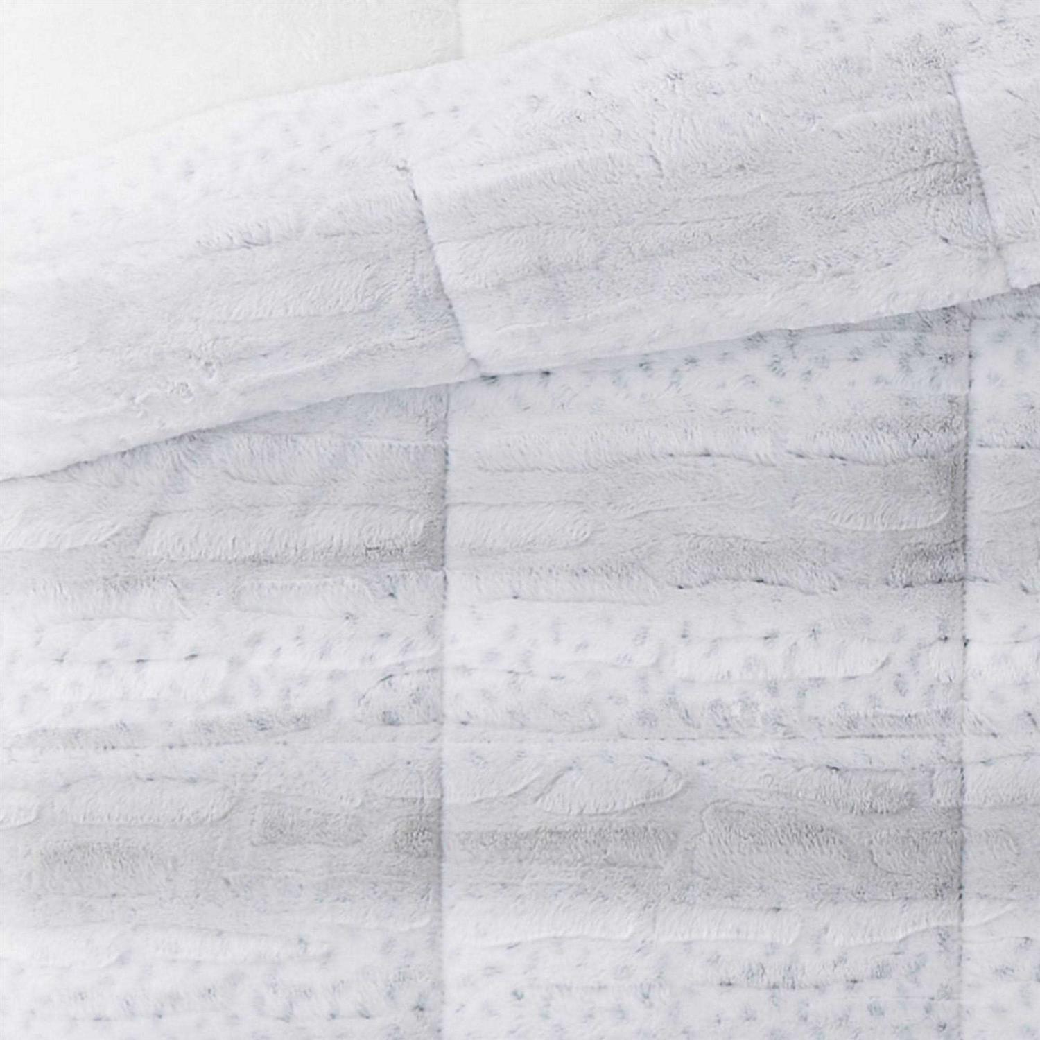 • Face is 100% carved PV fur reversing to velvet. Filled with 100% polyester for a lightweight yet warm comforter.